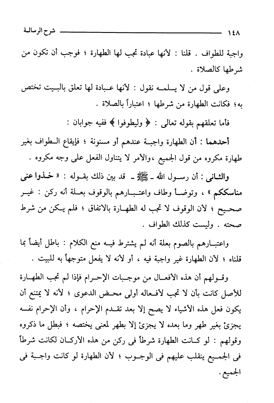 وقولهم أن هذه الأفعال من موجبات الإحرام فإذا لم تجب الطهارة للأصل كانت بأن لا تجب لأفعاله أولى محض الدعوى؛ لأنه لا يمتنع أن يكون فعل هذه الأشياء لا يصح إلا بعد تقدم الإحرام، وأن الإحرام نفسه يجزئ بغير طهر وما بعده لا يجزئ إلا بطهر لمعنى يختصه؛ فبطل ما ذكروه وقولهم: لو كانت الطهارة شرطًا في ركن من هذه الأركان لكانت شرطًا في الجميع ينقلب عليهم في الوجوب؛ لأن الطهارة لو كانت واجبة في الجميع.