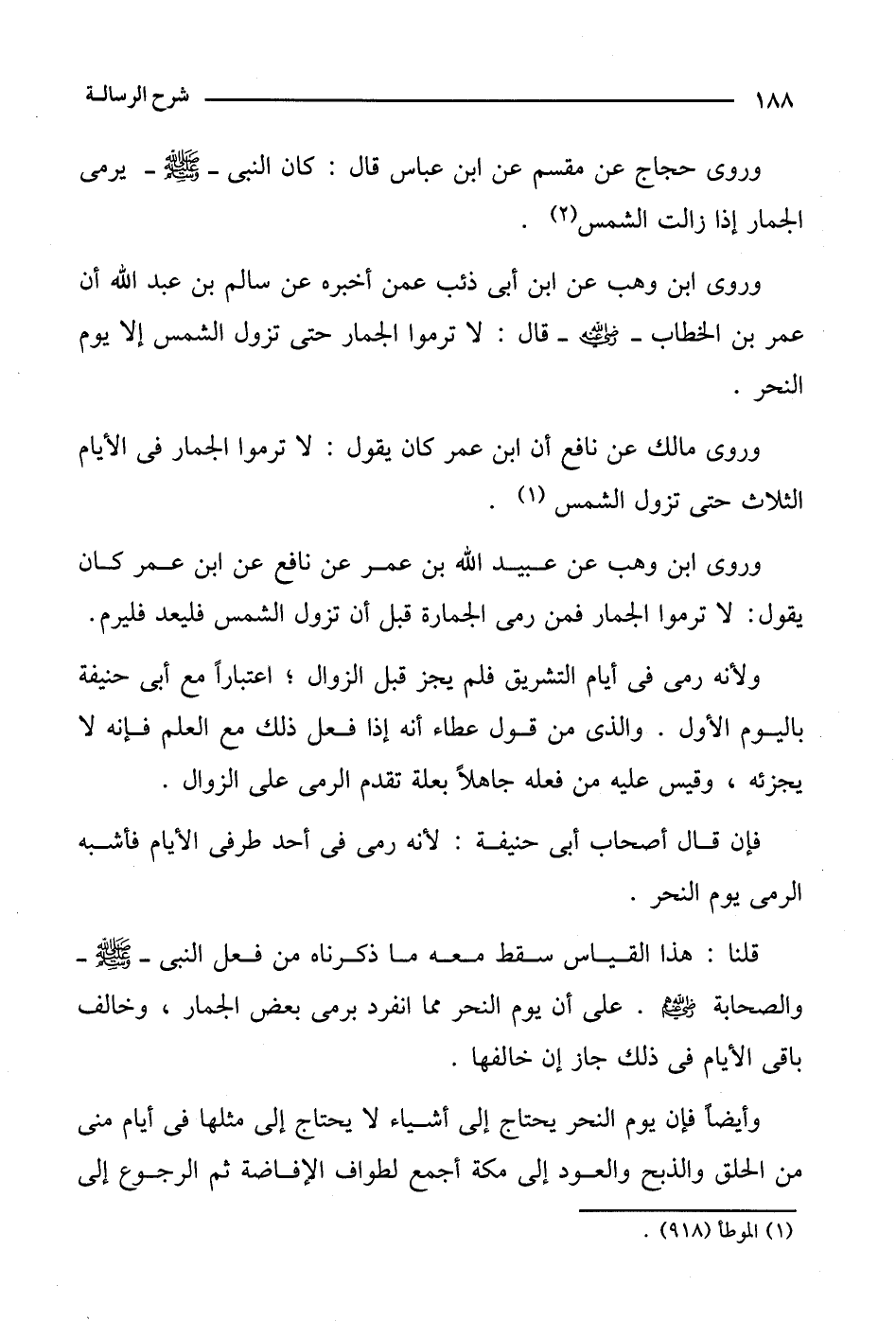 وروى ابن وهب عن ابن أبي ذئب عمن أخبره عن سالم بن عبد الله أن عمر بن الخطاب- رضي الله عنه- قال: لا ترموا الجمار حتى تزول الشمس إلا يوم النحر.