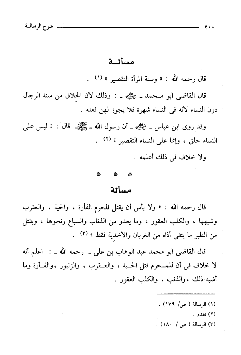 قال القاضي أبو محمد- رضي الله عنه-: وذلك لأن الحلاق من سنة الرجال دون النساء لأنه في النساء شهرة فلا يجوز لهن فعله.