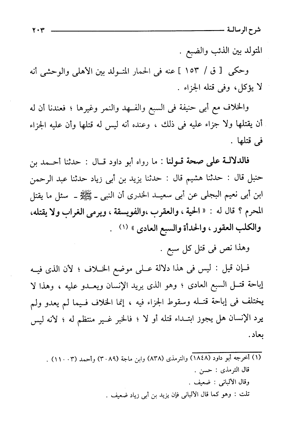 وحكى [ق/153] عنه في الحمار المتولد بين الأهلي والوحشي أنه لا يؤكل، وفي قتله جزاء.