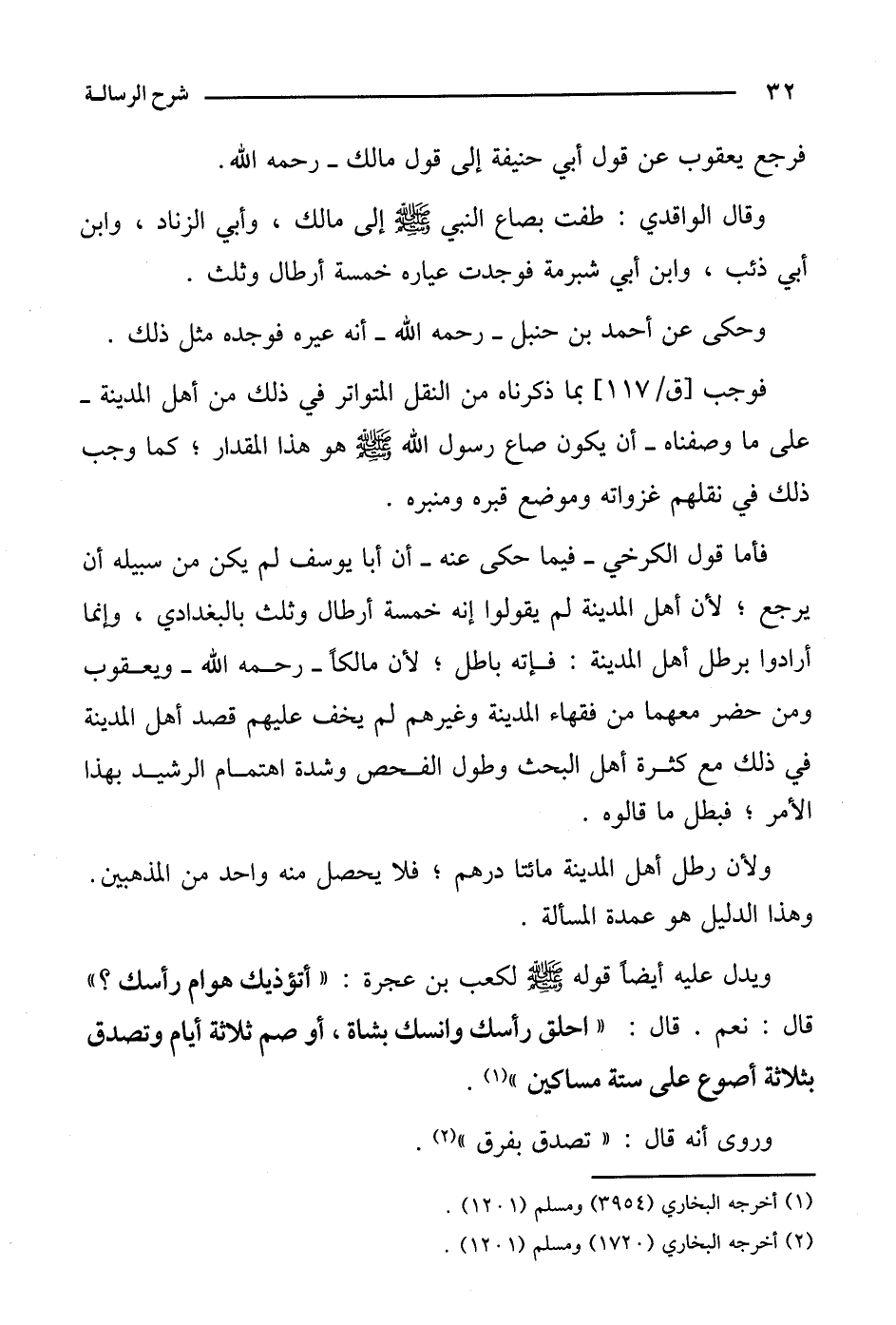 فوجب [ق/ 117] بما ذكرناه من النقل المتواتر في ذلك من أهل المدينة - على ما وصفناه - أن يكون صاع رسول الله صلى الله عليه وسلم هو هذا المقدار؛ كما وجب ذلك في نقلهم غزواته وموضع قبره ومنبره.