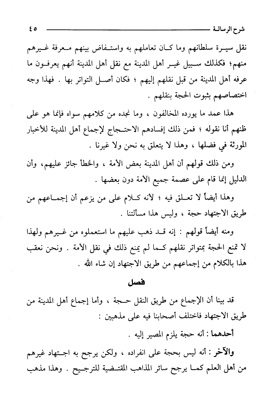 هذا عمد ما يورده المخالفون، وما نجده من كلامهم سواه فإنما هو على ظنهم أنا نقوله؛ فمن ذلك إفسادهم الاحتجاج لإجماع أهل المدينة للأخبار المورثة في فضلها، وهذا لا يتعلق به نحن ولا غيرنا.