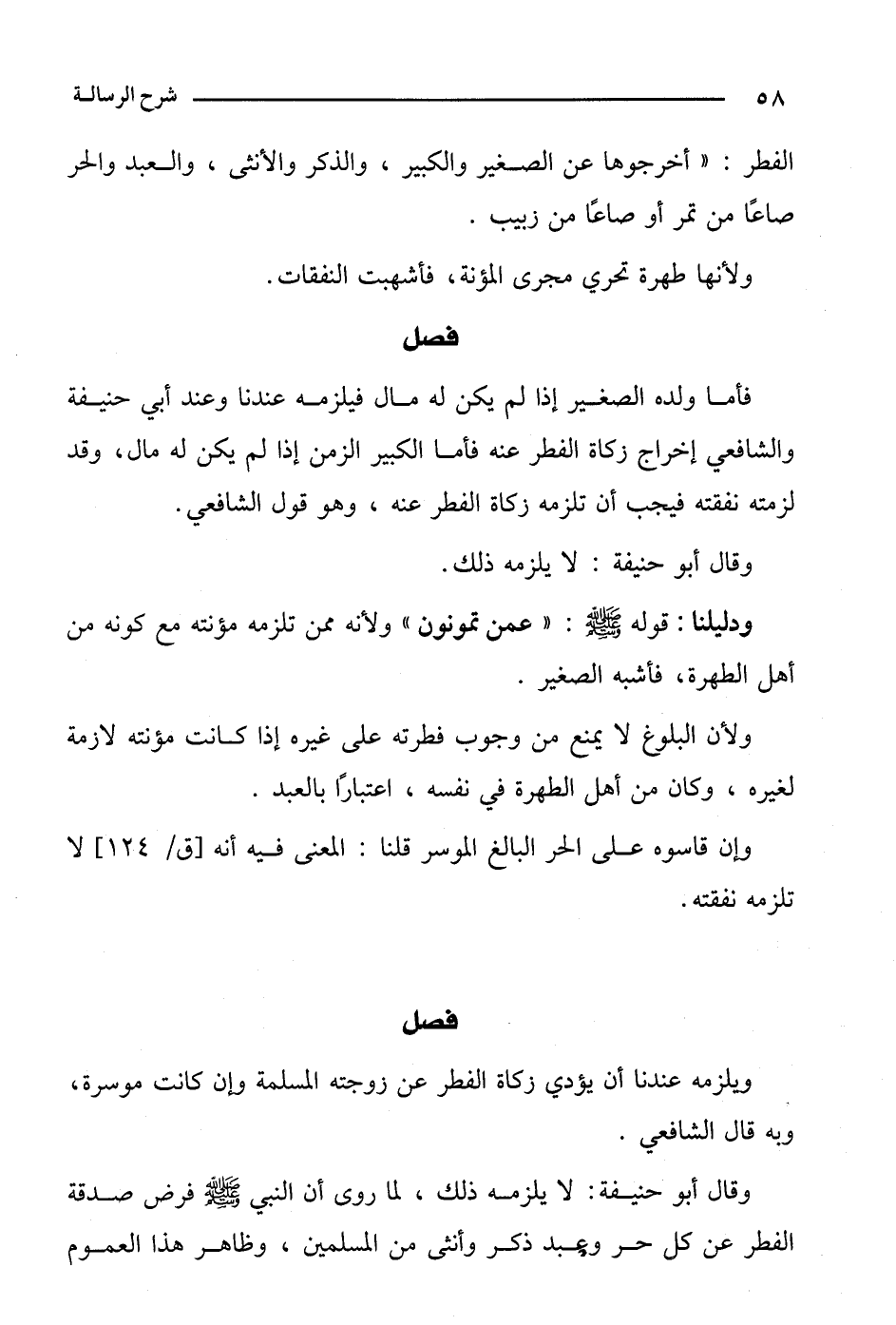 ودليلنا: قوله صلى الله عليه وسلم: "عمن تمونون" ولأنه ممن تلزمه مؤنته مع كونه من أهل الطهرة، فأشبه الصغير.