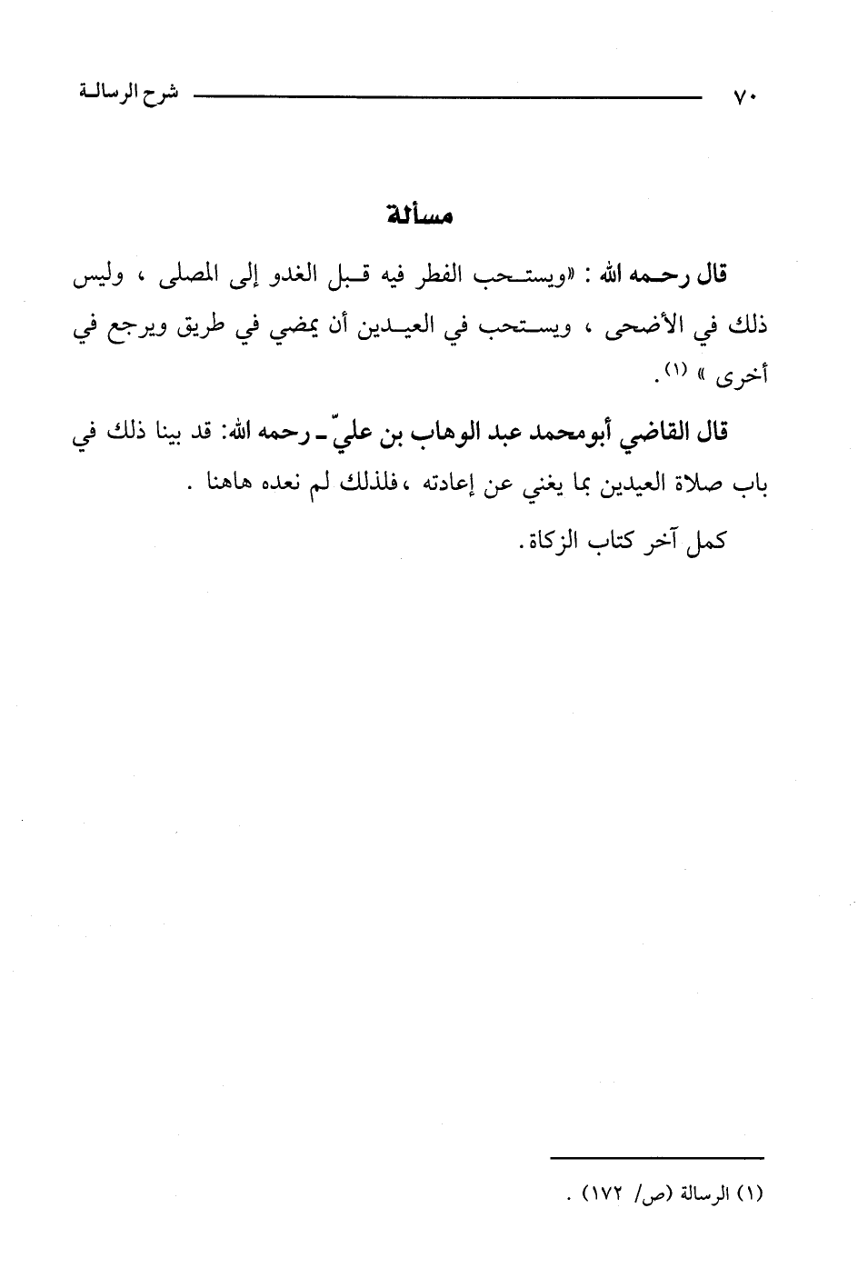 قال القاضي أبو محمد عبد الوهاب بن علي - رحمه الله: قد بينا ذلك في باب صلاة العيدين بما يغني عن إعادته، فلذلك لم نعده هاهنا.