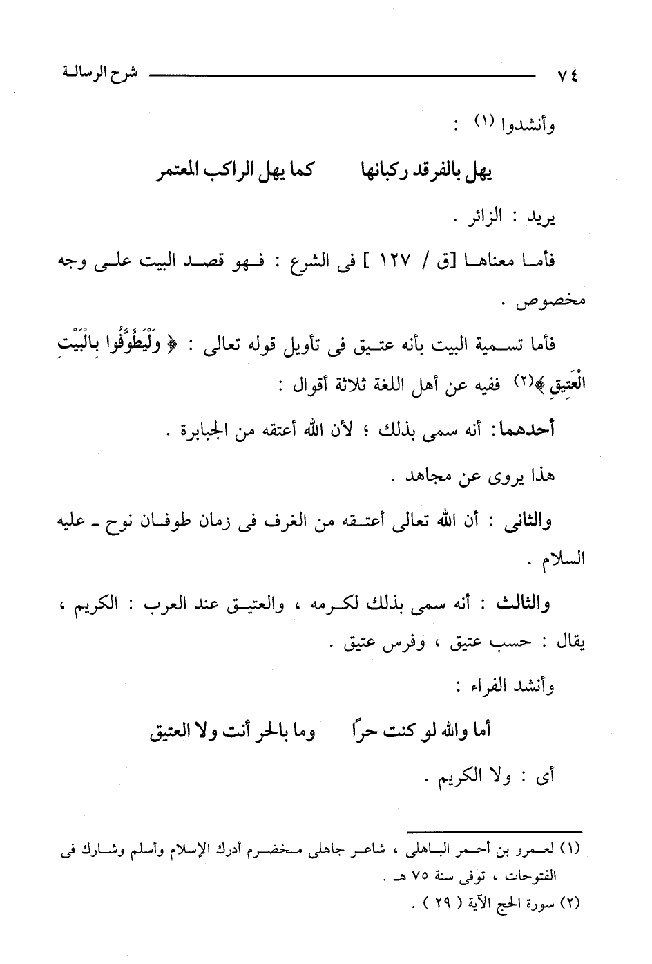 يهل بالفرقد ركبانها ... كما يهل الراكب المعتمر
