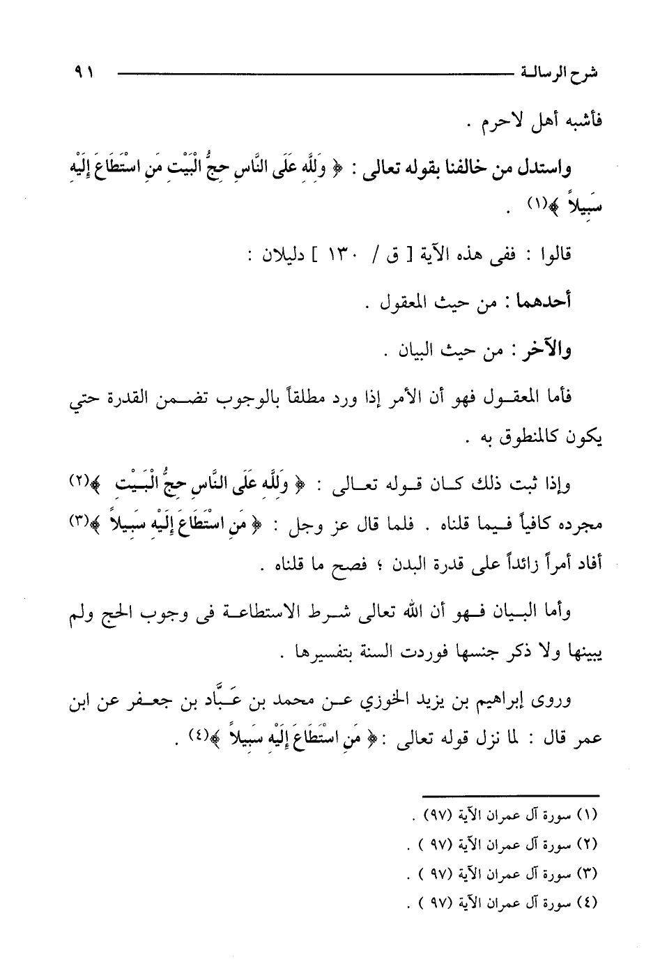 وروى إبراهيم بن يزيد الخوزي عن محمد بن عباد بن جعفر عن ابن عمر قال: لما نزل قوله تعالى:} من استطاع إليه سبيلاً}.