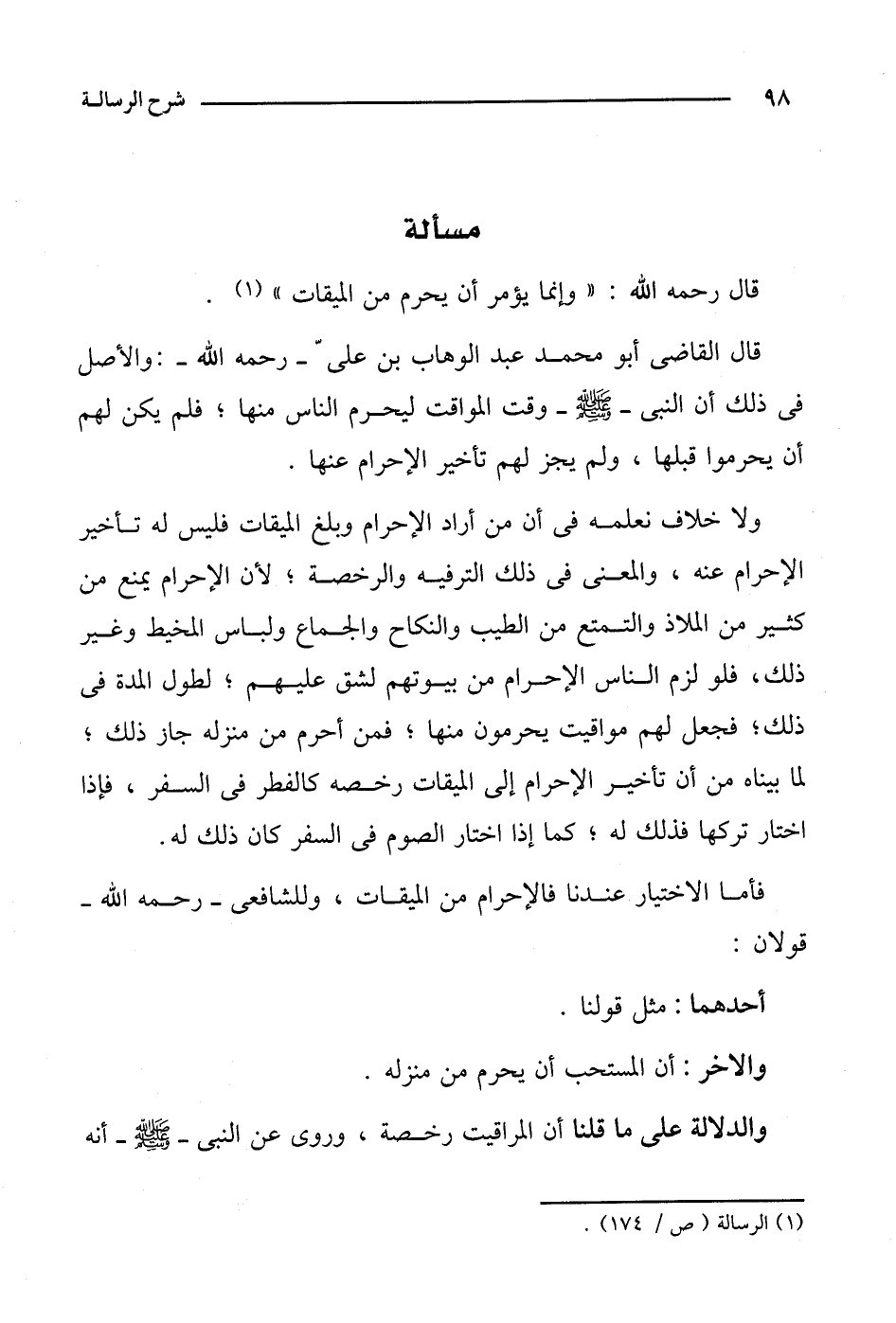 قال رحمه الله: "وإنما يؤمر أن يحرم من الميقات".