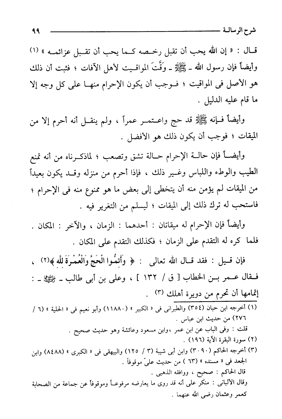 قال: "إن الله يحب أن تقبل رخصه كما يحب أن تقبل عزائمه" وأيضًا فإن رسول الله - صلى الله عليه وسلم - وقت المواقيت لأهل الآفات؛ فثبت أن ذلك هو الأصل في المواقيت؛ فوجب أن يكون الإحرام منها على كل وجه إلا ما قام عليه الدليل.