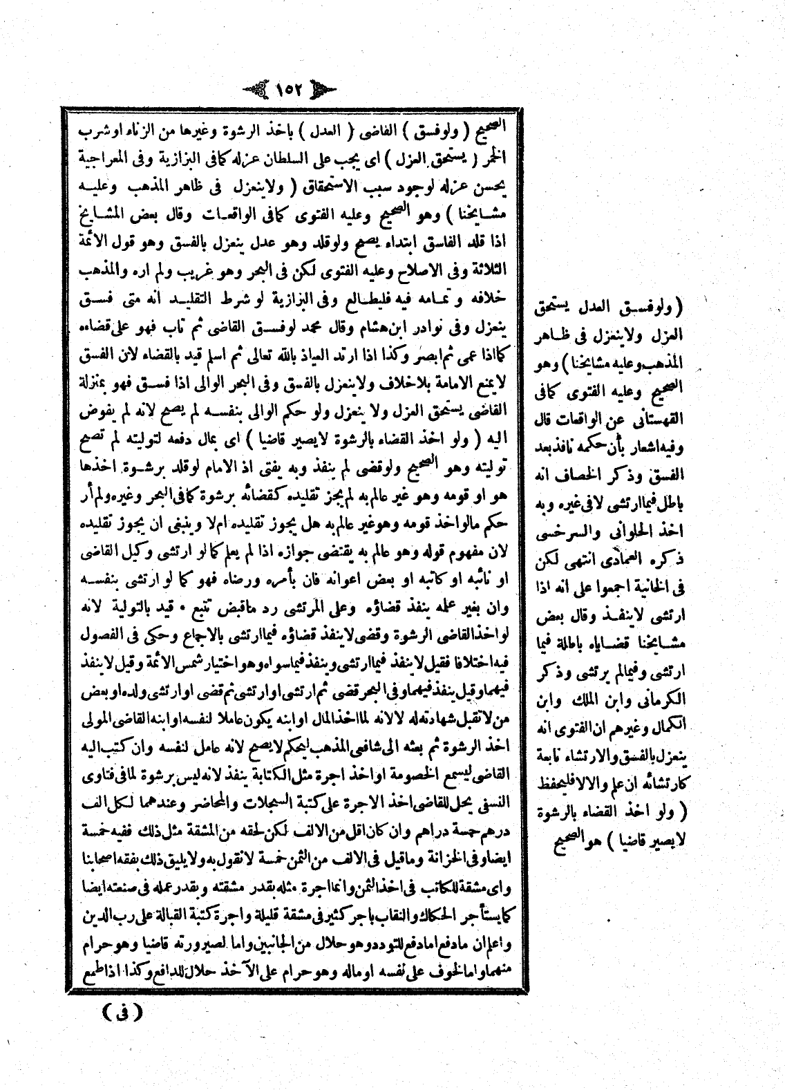 قَيَّدَ بِالتَّوْلِيَةِ لِأَنَّهُ لَوْ أَخَذَ الْقَاضِي الرِّشْوَةَ وَقَضَى لَا يَنْفُذُ قَضَاؤُهُ فِيمَا ارْتَشَى بِالْإِجْمَاعِ وَحَكَى فِي الْفُصُولِ فِيهِ اخْتِلَافًا فَقِيلَ لَا يَنْفُذُ فِيمَا ارْتَشَى وَيَنْفُذُ فِيمَا سِوَاهُ، وَهُوَ اخْتِيَارُ شَمْسِ الْأَئِمَّةِ، وَقِيلَ لَا يَنْفُذُ فِيهِمَا، وَقِيلَ: يَنْفُذُ فِيهِمَا.