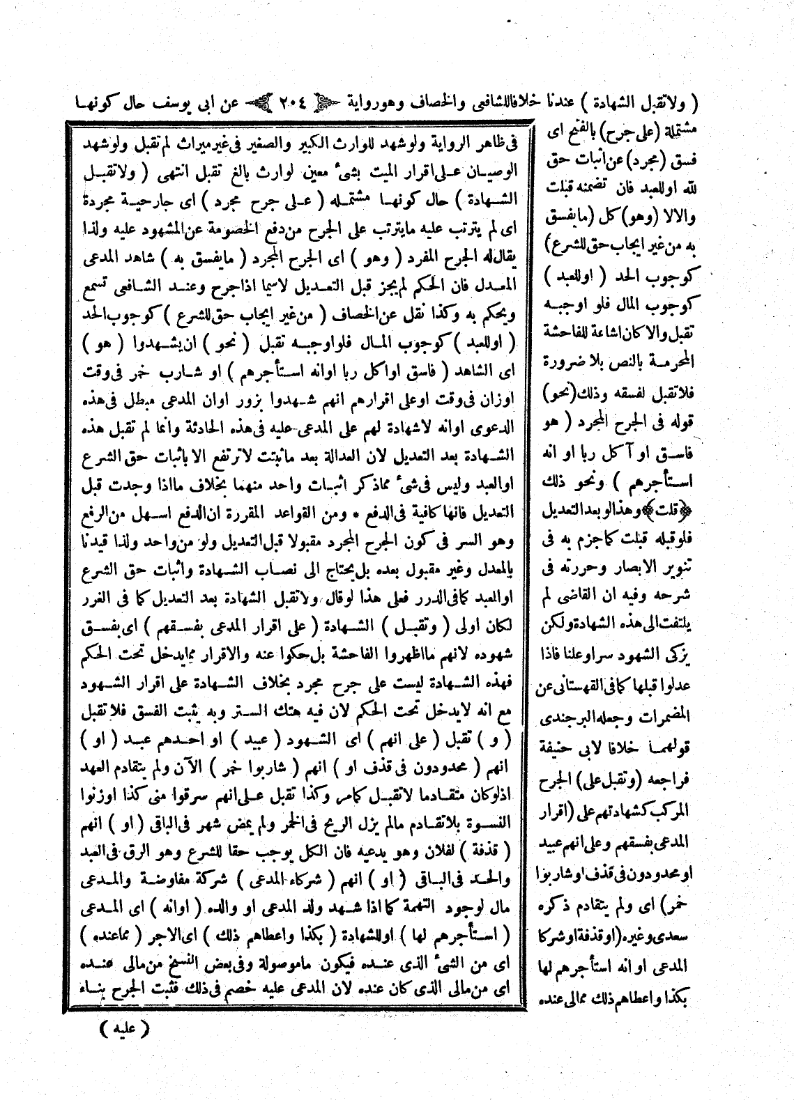 (وَلَا تُقْبَلُ الشَّهَادَةُ) حَالَ كَوْنِهَا مُشْتَمِلَةً (عَلَى جَرْحٍ مُجَرَّدٍ) أَيْ جَارِحِيَّةٍ مُجَرَّدَةٍ أَيْ لَمْ يَتَرَتَّبْ عَلَيْهِ مَا يَتَرَتَّبُ عَلَى الْجَرْحِ مِنْ دَفْعِ الْخُصُومَةِ عَنْ الْمَشْهُودِ عَلَيْهِ وَلِذَا يُقَالُ لَهُ الْجَرْحُ الْمُفْرَدُ (وَهُوَ) أَيْ الْجَرْحُ الْمُجَرَّدُ (مَا يَفْسُقُ بِهِ) شَاهِدُ الْمُدَّعِي الْمُعَدَّلُ فَإِنَّ الْحُكْمَ لَمْ يَجُزْ قَبْلَ التَّعْدِيلِ لَا سِيَّمَا إذَا جُرِحَ وَعِنْدَ الشَّافِعِيِّ تُسْمَعُ وَيُحْكَمُ بِهِ وَكَذَا نُقِلَ عَنْ الْخَصَّافِ (مِنْ غَيْرِ إيجَابِ حَقٍّ لِلشَّرْعِ) كَوُجُوبِ الْحَدِّ (أَوْ لِلْعَبْدِ) كَوُجُوبِ الْمَالِ فَلَوْ، أَوْجَبَهُ تُقْبَلُ (نَحْوُ) أَنْ يَشْهَدُوا (هُوَ) أَيْ الشَّاهِدُ (فَاسِقٌ، أَوْ آكِلُ رِبًا وَأَنَّهُ اسْتَأْجَرَهُمْ) ، أَوْ شَارِبُ خَمْرٍ فِي وَقْتِ، أَوْ زَانٍ فِي وَقْتٍ، أَوْ عَلَى إقْرَارِهِمْ أَنَّهُمْ شَهِدُوا بِزُورِ أَوْ أَنَّ الْمُدَّعِيَ مُبْطِلٌ فِي هَذِهِ الدَّعْوَى أَوْ أَنَّهُ لَا شَهَادَةَ لَهُمْ عَلَى الْمُدَّعَى عَلَيْهِ فِي هَذِهِ الْحَادِثَةِ، وَإِنَّمَا لَمْ تُقْبَلُ هَذِهِ الشَّهَادَةُ بَعْدَ التَّعْدِيلِ؛ لِأَنَّ الْعَدَالَةَ بَعْدَمَا ثَبَتَتْ لَا تَرْتَفِعُ إلَّا بِإِثْبَاتِ حَقِّ الشَّرْعِ، أَوْ الْعَبْدِ وَلَيْسَ فِي شَيْءٍ مِمَّا ذُكِرَ إثْبَاتُ وَاحِدٍ مِنْهُمَا بِخِلَافِ مَا إذَا وُجِدَتْ قَبْلَ التَّعْدِيلِ فَإِنَّهَا كَافِيَةٌ فِي الدَّفْعِ وَمِنْ الْقَوَاعِدِ الْمُقَرَّرَةِ أَنَّ الدَّفْعَ أَسْهَلُ مِنْ الرَّفْعِ وَهُوَ السِّرُّ فِي كَوْنِ الْجَرْحِ الْمُجَرَّدِ مَقْبُولًا قَبْلَ التَّعْدِيلِ وَلَوْ مِنْ وَاحِدٍ وَلِذَا قَيَّدْنَا بِالْمُعَدَّلِ وَغَيْرِ مَقْبُولٍ بَعْدَهُ بَلْ يَحْتَاجُ إلَى نِصَابِ الشَّهَادَةِ وَإِثْبَاتِ حَقِّ الشَّرْعِ، أَوْ الْعَبْدِ كَمَا فِي الدُّرَرِ فَعَلَى هَذَا لَوْ قَالَ: وَلَا تُقْبَلُ الشَّهَادَةُ بَعْدَ التَّعْدِيلِ كَمَا فِي الْغَرَرِ لَكَانَ، أَوْلَى.