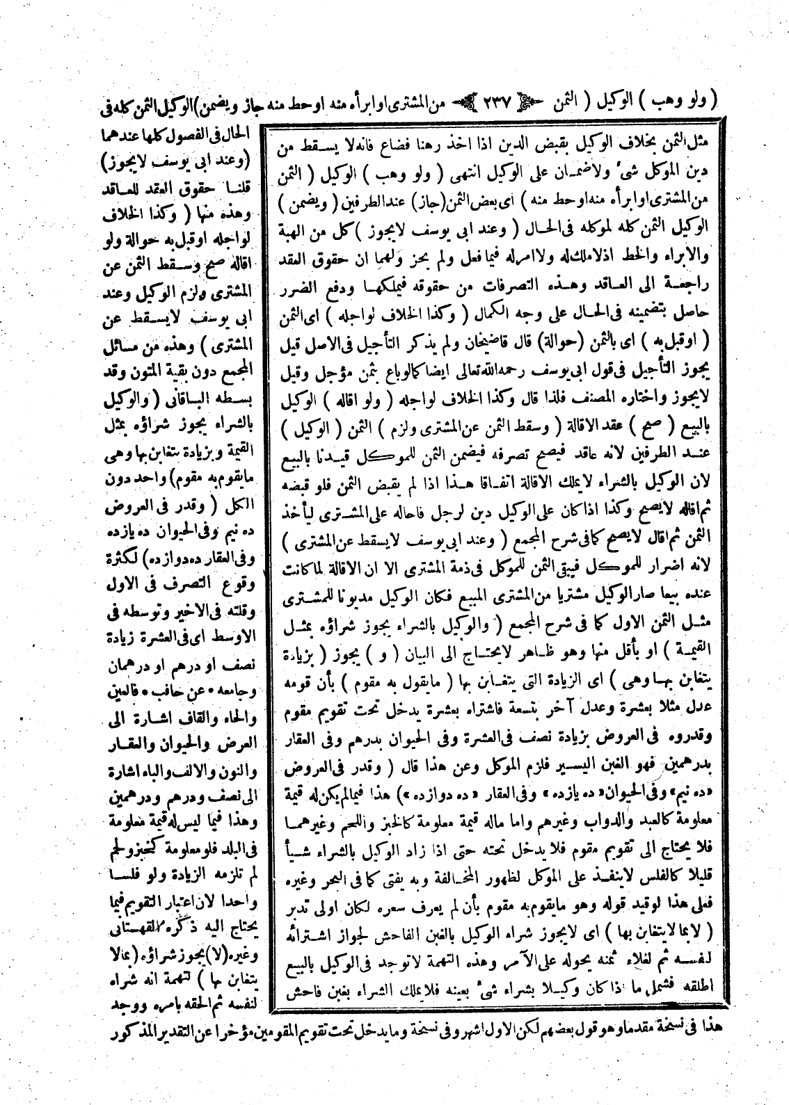 (وَلَوْ وَهَبَ) الْوَكِيلُ (الثَّمَنَ مِنْ الْمُشْتَرِي، أَوْ أَبْرَأَهُ مِنْهُ، أَوْ حَطَّ مِنْهُ) أَيْ بَعْضَ الثَّمَنِ (جَازَ) عِنْدَ الطَّرَفَيْنِ (وَيَضْمَنُ) الْوَكِيلُ الثَّمَنَ كُلَّهُ لِمُوَكِّلِهِ فِي الْحَالِ (وَعِنْدَ أَبِي يُوسُفَ لَا يَجُوزُ) كُلٌّ مِنْ الْهِبَةِ وَالْإِبْرَاءِ وَالْحَطِّ إذْ لَا مِلْكَ لَهُ وَلَا أَمْرَ لَهُ فِيمَا فَعَلَ وَلَمْ يَجُزْ وَلَهُمَا أَنَّ حُقُوقَ الْعَقْدِ رَاجِعَةٌ إلَى الْعَاقِدِ، وَهَذِهِ التَّصَرُّفَاتُ مِنْ حُقُوقِهِ فَيَمْلِكُهَا وَدَفْعُ الضَّرَرِ حَاصِلٌ بِتَضْمِينِهِ فِي الْحَالِ عَلَى وَجْهِ الْكَمَالِ.