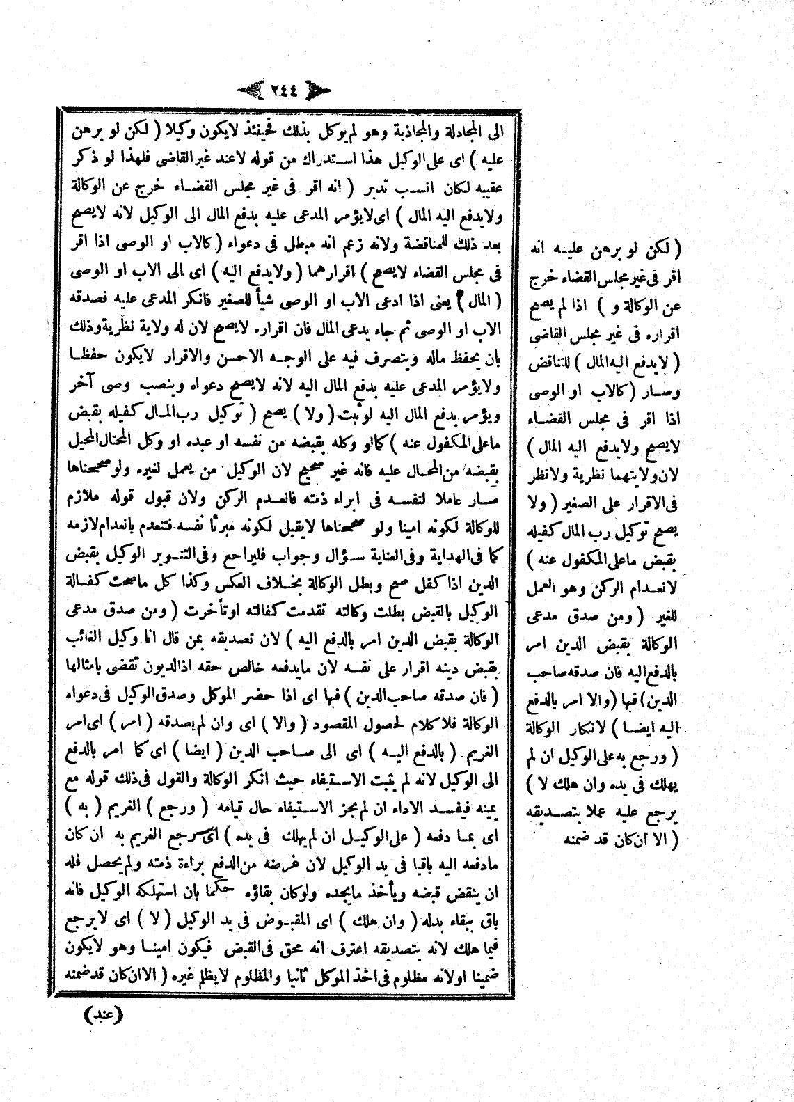 إلَى الْمُجَادَلَةِ وَالْمُجَاذَبَةِ وَهُوَ لَمْ يُوَكِّلْ بِذَلِكَ فَحِينَئِذٍ لَا يَكُونُ وَكِيلًا (لَكِنْ لَوْ بَرْهَنَ عَلَيْهِ) أَيْ عَلَى الْوَكِيلِ، هَذَا اسْتِدْرَاكٌ مِنْ قَوْلِهِ لَا عِنْدَ غَيْرِ الْقَاضِي؛ فَلِهَذَا لَوْ ذُكِرَ عَقِيبَهُ لَكَانَ أَنْسَبَ تَدَبَّرْ.