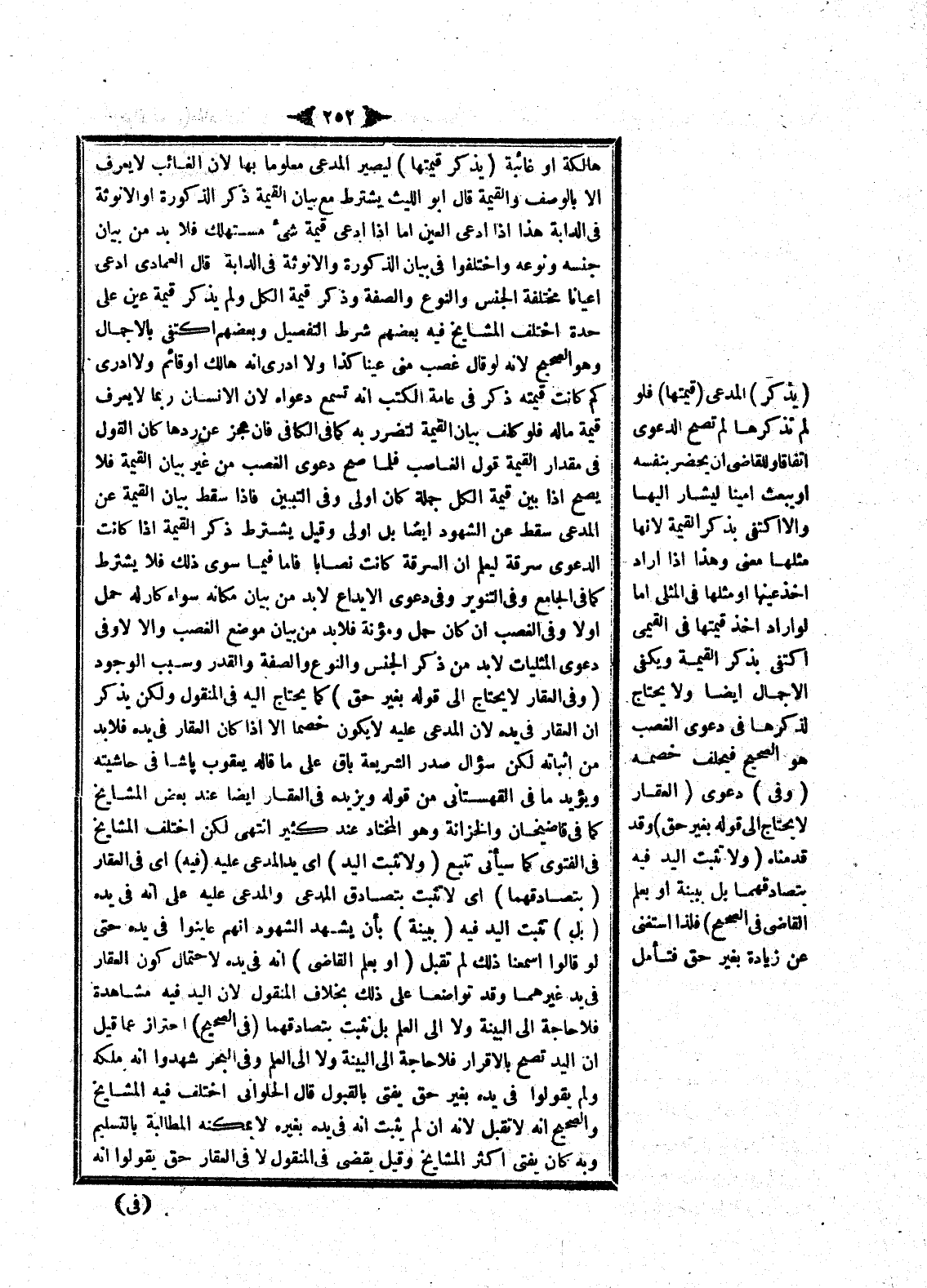 وَفِي التَّبْيِينِ فَإِذَا سَقَطَ بَيَانُ الْقِيمَةِ عَنْ الْمُدَّعِي سَقَطَ عَنْ الشُّهُودِ أَيْضًا بَلْ أَوْلَى وَقِيلَ يُشْتَرَطُ ذِكْرُ الْقِيمَةِ إذَا كَانَتْ الدَّعْوَى سَرِقَةً لَيَعْلَمَ أَنَّ السَّرِقَةَ كَانَتْ نِصَابًا فَأَمَّا فِيمَا سِوَى ذَلِكَ فَلَا يُشْتَرَطُ كَمَا فِي الْجَامِعِ.