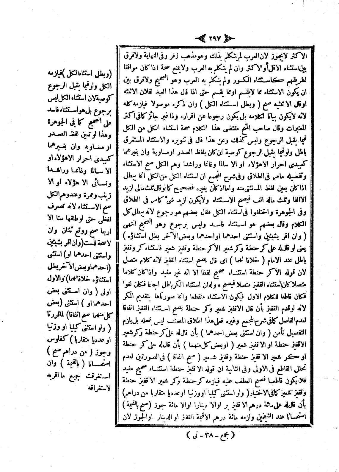 وَفِي الْجَوْهَرَةِ وَاخْتَلَفُوا فِي اسْتِثْنَاءِ الْكُلِّ، فَقَالَ بَعْضُهُمْ: هُوَ رُجُوعٌ لِأَنَّهُ يُبْطِلُ كُلَّ الْكَلَامِ، وَقَالَ بَعْضُهُمْ: هُوَ اسْتِثْنَاءٌ فَاسِدٌ وَلَيْسَ بِرُجُوعٍ وَهُوَ الصَّحِيحُ انْتَهَى.