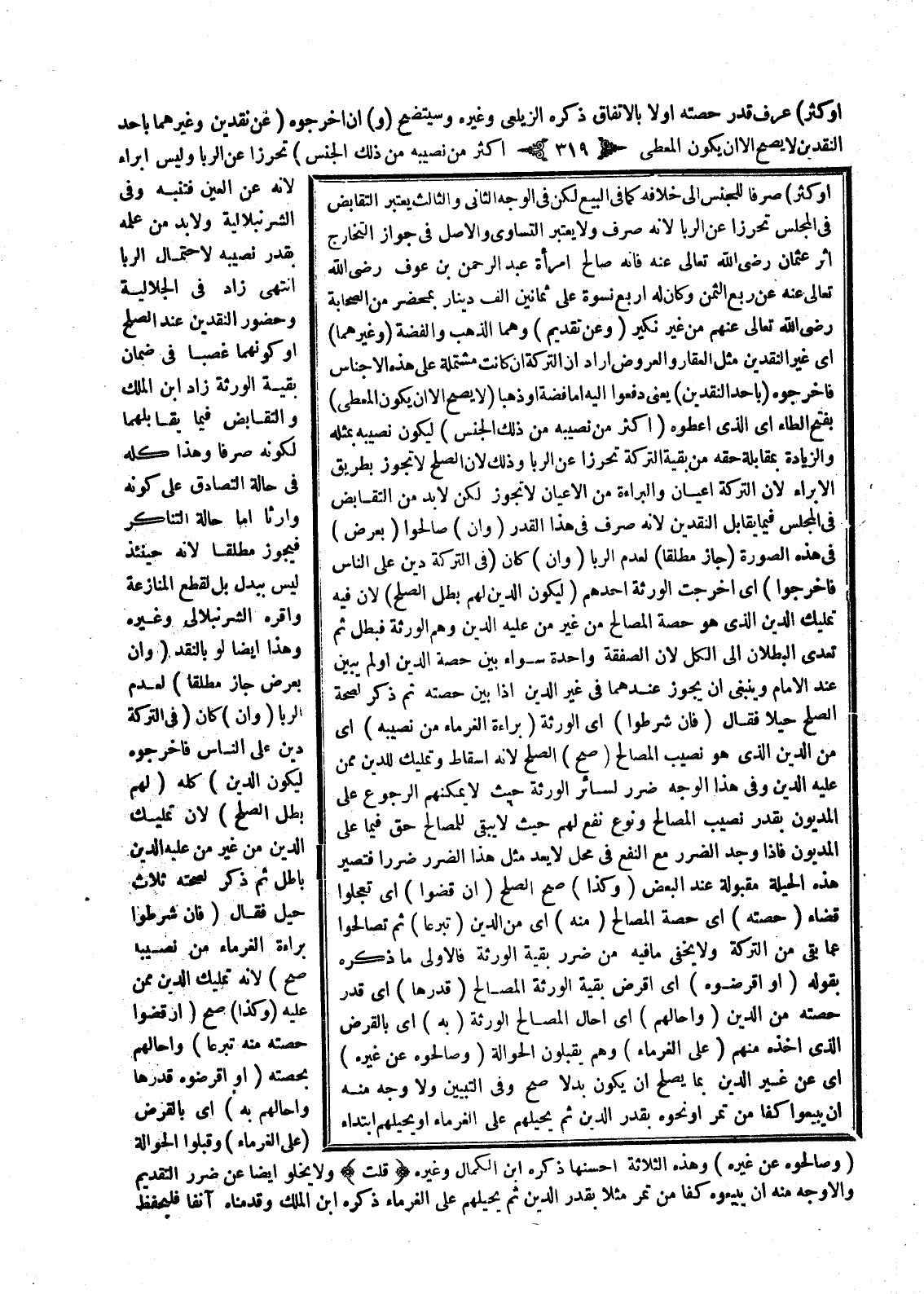 أَوْ كَثُرَ) صَرْفًا لِلْجِنْسِ إلَى خِلَافِهِ كَمَا فِي الْبَيْعِ لَكِنْ فِي الْوَجْهِ الثَّانِي وَالثَّالِثِ يُعْتَبَرُ التَّقَابُضُ فِي الْمَجْلِسِ تَحَرُّزًا عَنْ الرِّبَا لِأَنَّهُ صَرْفٌ، وَلَا يُعْتَبَرُ التَّسَاوِي، وَالْأَصْلُ فِي جَوَازِ التَّخَارُجِ أَثَرُ عُثْمَانَ - رَضِيَ اللَّهُ تَعَالَى عَنْهُ - فَإِنَّهُ صَالَحَ امْرَأَةَ عَبْدِ الرَّحْمَنِ بْنِ عَوْفٍ - رَضِيَ اللَّهُ تَعَالَى عَنْهُ - عَنْ رُبُعِ الثُّمُنِ - وَكَانَ لَهُ أَرْبَعُ نِسْوَةٍ - عَلَى ثَمَانِينَ أَلْفَ دِينَارٍ بِمَحْضَرٍ مِنْ الصَّحَابَةِ - رَضِيَ اللَّهُ تَعَالَى عَنْهُمْ - مِنْ غَيْرِ نَكِيرٍ (وَعَنْ نَقْدَيْنِ) وَهُمَا الذَّهَبُ وَالْفِضَّةُ (وَغَيْرِهِمَا) أَيْ غَيْرِ النَّقْدَيْنِ، مِثْلُ الْعَقَارِ وَالْعُرُوضِ، أَرَادَ أَنَّ التَّرِكَةَ إنْ كَانَتْ مُشْتَمِلَةً عَلَى هَذِهِ الْأَجْنَاسِ فَأَخْرَجُوهُ (بِأَحَدِ النَّقْدَيْنِ) يَعْنِي دَفَعُوا إلَيْهِ إمَّا فِضَّةً أَوْ ذَهَبًا (لَا يَصِحُّ إلَّا أَنْ يَكُونَ الْمُعْطَى) بِفَتْحِ الطَّاءِ أَيْ الَّذِي أَعْطَوْهُ (أَكْثَرَ مِنْ نَصِيبِهِ مِنْ ذَلِكَ الْجِنْسِ) لِيَكُونَ نَصِيبُهُ بِمِثْلِهِ، وَالزِّيَادَةُ بِمُقَابَلَةِ حَقِّهِ مِنْ بَقِيَّةِ التَّرِكَةِ تَحَرُّزًا عَنْ الرِّبَا وَذَلِكَ لِأَنَّ الصُّلْحَ لَا تَجُوزُ بِطَرِيقِ الْإِبْرَاءِ، لِأَنَّ التَّرِكَةَ أَعْيَانٌ، وَالْبَرَاءَةُ مِنْ الْأَعْيَانِ لَا تَجُوزُ لَكِنْ لَا بُدَّ مِنْ التَّقَابُضِ فِي الْمَجْلِسِ فِيمَا يُقَابِلُ النَّقْدَيْنِ لِأَنَّهُ صَرْفٌ فِي هَذَا الْقَدْرِ (وَإِنْ) صَالَحُوا (بِعَرْضٍ) فِي هَذِهِ الصُّورَةِ (جَازَ مُطْلَقًا) لِعَدَمِ الرِّبَا.