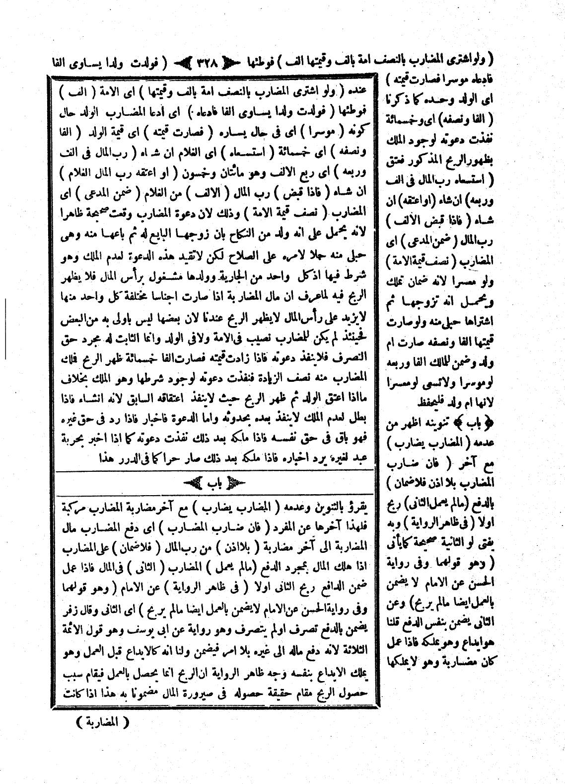 بَابٌ يُقْرَأُ بِالتَّنْوِينِ وَعَدَمِهِ (الْمُضَارِبُ يُضَارِبُ) مَعَ آخَرَ، مُضَارَبَةُ الْمُضَارِبِ مُرَكَّبَةٌ فَلِهَذَا أَخَّرَهَا عَنْ الْمُفْرَدِ (فَإِنْ ضَارَبَ الْمُضَارِبُ) أَيْ دَفَعَ الْمُضَارِبُ مَالَ الْمُضَارَبَةِ إلَى آخَرَ مُضَارَبَةً (بِلَا إذْنٍ) مِنْ رَبِّ الْمَالِ (فَلَا ضَمَانَ) عَلَى الْمُضَارِبِ إذَا هَلَكَ الْمَالُ بِمُجَرَّدِ الدَّفْعِ (مَا لَمْ يَعْمَلْ) الْمُضَارِبُ (الثَّانِي) فِي الْمَالِ فَإِذَا عَمِلَ ضَمِنَ الدَّافِعُ رِبْحَ الثَّانِي أَوَّلًا (فِي ظَاهِرِ الرِّوَايَةِ) عَنْ الْإِمَامِ (وَهُوَ قَوْلُهُمَا، وَفِي رِوَايَةِ الْحَسَنِ عَنْ الْإِمَامِ لَا يَضْمَنُ بِالْعَمَلِ أَيْضًا مَا لَمْ يَرْبَحْ) أَيْ الثَّانِي.