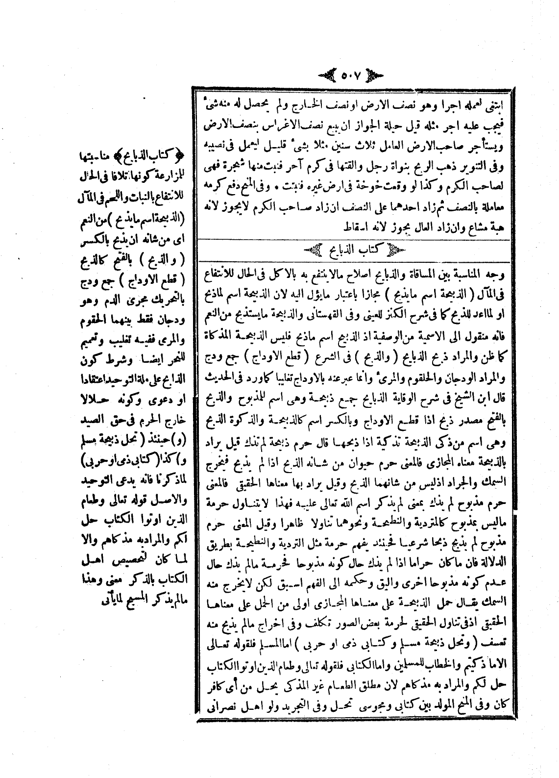 وَجْهُ الْمُنَاسَبَةِ بَيْنَ الْمُسَاقَاةِ وَالذَّبَائِحِ إصْلَاحُ مَا لَا يَنْتَفِعُ بِهِ بِالْأَكْلِ فِي الْحَالِ لِلِانْتِفَاعِ فِي الْمَآلِ (الذَّبِيحَةُ اسْمُ مَا يُذْبَحُ) مَجَازًا بِاعْتِبَارِ مَا يَئُولُ إلَيْهِ لِأَنَّ الذَّبِيحَةَ اسْمٌ لِمَا ذُبِحَ أَوْ لِمَا أُعَدَّ لِلذَّبْحِ كَمَا فِي شَرْحِ الْكَنْزِ لِلْعَيْنِيِّ.