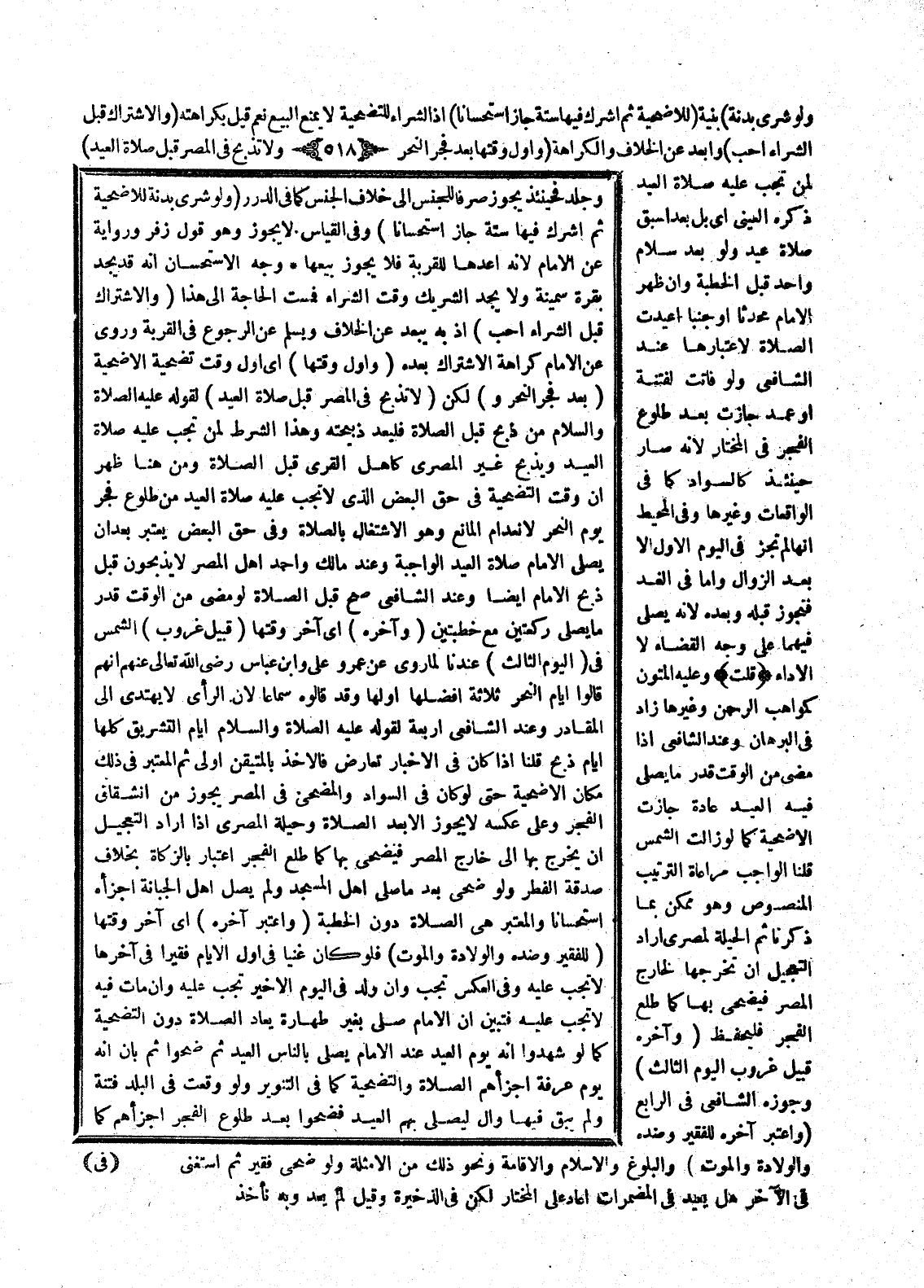 (وَأَوَّلُ وَقْتِهَا) أَيْ أَوَّلُ وَقْتِ تَضْحِيَةِ الْأُضْحِيَّةِ (بَعْدَ فَجْرِ النَّحْرِ، وَ) لَكِنْ (لَا تُذْبَحُ فِي الْمِصْرِ قَبْلَ صَلَاةِ الْعِيدِ) لِقَوْلِهِ - عَلَيْهِمْ الصَّلَاةُ وَالسَّلَامُ - «مَنْ ذَبَحَ قَبْلَ الصَّلَاةِ فَلِيُعِدْ ذَبِيحَتَهُ» وَهَذَا الشَّرْطُ لِمَنْ تَجِبُ عَلَيْهِ صَلَاةُ الْعِيدِ وَيَذْبَحُ غَيْرُ الْمِصْرِيِّ كَأَهْلِ الْقُرَى قَبْلَ الصَّلَاةِ وَمِنْ هُنَا ظَهَرَ أَنَّ وَقْتَ التَّضْحِيَةِ فِي حَقِّ الْبَعْضِ الَّذِي لَا تَجِبُ عَلَيْهِ صَلَاةُ الْعِيدِ مِنْ طُلُوعِ فَجْرِ يَوْمِ النَّحْرِ لِانْعِدَامِ الْمَانِعِ وَهُوَ الِاشْتِغَالُ بِالصَّلَاةِ وَفِي حَقِّ الْبَعْضِ يُعْتَبَرُ بَعْدَ أَنْ يُصَلِّيَ الْإِمَامُ صَلَاةَ الْعِيدِ الْوَاجِبَةِ وَعِنْدَ مَالِكٍ وَأَحْمَدَ أَهْلُ الْمِصْرِ لَا يَذْبَحُونَ قَبْلَ ذَبْحِ الْإِمَامِ أَيْضًا وَعِنْدَ الشَّافِعِيِّ صَحَّ قَبْلَ الصَّلَاةِ لَوْ مَضَى مِنْ الْوَقْتِ قَدْرُ مَا يُصَلِّي رَكْعَتَيْنِ مَعَ خُطْبَتَيْنِ (وَآخِرُهُ) أَيْ آخِرُ وَقْتِهَا (قُبَيْلَ غُرُوبِ) الشَّمْسِ فِي (الْيَوْمِ الثَّالِثِ) عِنْدَنَا لِمَا رُوِيَ عَنْ عُمَرَ وَعَلِيٍّ وَابْنِ عَبَّاسٍ - رَضِيَ اللَّهُ تَعَالَى عَنْهُمْ - أَنَّهُمْ قَالُوا أَيَّامُ النَّحْرِ ثَلَاثَةُ أَفْضَلُهَا أَوَّلُهَا وَقَدْ قَالُوهُ سَمَاعًا؛ لِأَنَّ الرَّأْيَ لَا يَهْتَدِي إلَى الْمُقَادِرِ وَعِنْدَ الشَّافِعِيِّ أَرْبَعَةٌ لِقَوْلِهِ - عَلَيْهِ الصَّلَاةُ وَالسَّلَامُ - «أَيَّامُ التَّشْرِيقِ كُلُّهَا أَيَّامُ ذَبْحٍ» قُلْنَا إذَا كَانَ فِي الْأَخْبَارِ تَعَارُضٌ فَالْأَخْذُ بِالْمُتَيَقَّنِ أَوْلَى ثُمَّ الْمُعْتَبَرُ فِي ذَلِكَ مَكَانُ الْأُضْحِيَّةِ حَتَّى لَوْ كَانَ فِي السَّوَادِ وَالْمُضَحِّي فِي الْمِصْرِ يَجُوزُ مِنْ انْشِقَاقِ الْفَجْرِ وَعَلَى عَكْسِهِ لَا يَجُوزُ إلَّا بَعْدَ الصَّلَاةِ وَحِيلَةُ الْمِصْرِيِّ إذَا أَرَادَ التَّعْجِيلَ أَنْ يَخْرُجَ بِهَا إلَى خَارِجِ الْمِصْرِ فَيُضَحِّي بِهَا كَمَا طَلَعَ الْفَجْرُ اعْتِبَارٌ بِالزَّكَاةِ بِخِلَافِ صَدَقَةِ الْفِطْرِ وَلَوْ ضَحَّى بَعْدَمَا صَلَّى أَهْلُ الْمَسْجِدِ وَلَمْ يُصَلِّ أَهْلُ الْجَبَّانَةِ أَجْزَأَهُ اسْتِحْسَانًا وَالْمُعْتَبَرُ هِيَ الصَّلَاةُ دُونَ الْخُطْبَةِ (وَاعْتُبِرَ آخِرُهُ) أَيْ آخِرُ وَقْتِهَا (لِلْفَقِيرِ وَضِدِّهِ وَالْوِلَادَةِ وَالْمَوْتِ) فَلَوْ كَانَ غَنِيًّا فِي أَوَّلِ الْأَيَّامِ فَقِيرًا فِي آخَرهَا لَا تَجِبُ عَلَيْهِ وَفِي الْعَكْسِ تَجِبُ وَإِنْ وُلِدَ فِي الْيَوْمِ الْأَخِيرِ تَجِبُ عَلَيْهِ وَإِنْ مَاتَ فِيهِ لَا تَجِبُ عَلَيْهِ فَتَبَيَّنَ أَنَّ الْإِمَامَ صَلَّى بِغَيْرِ طَهَارَةٍ يُعَادُ الصَّلَاةُ دُونَ التَّضْحِيَةِ كَمَا لَوْ شَهِدُوا أَنَّهُ يَوْمُ الْعِيدِ عِنْدَ الْإِمَامِ يُصَلِّي بِالنَّاسِ الْعِيدَ ثُمَّ ضَحَّوْا ثُمَّ بَانَ أَنَّهُ يَوْمُ عَرَفَةَ أَجْزَأَهُمْ الصَّلَاةُ وَالتَّضْحِيَةُ كَمَا فِي التَّنْوِيرِ وَلَوْ وَقَعَتْ فِي الْبَلَدِ فِتْنَةٌ وَلَمْ يَبْقَ فِيهَا وَالٍ لِيُصَلِّيَ بِهِمْ الْعِيدَ فَضَحَّوْا بَعْدَ طُلُوعِ الْفَجْرِ أَجْزَأَهُمْ كَمَا