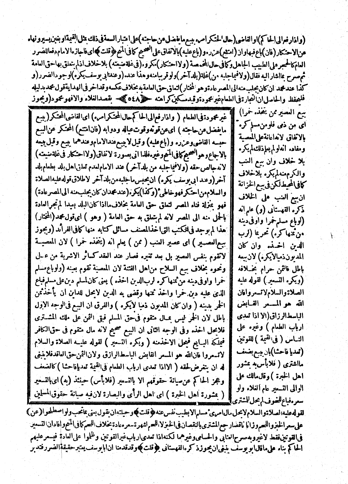 (وَيُكْرَهُ التَّسْعِيرُ) لِقَوْلِهِ - عَلَيْهِ الصَّلَاةُ وَالسَّلَامُ - «لَا تُسَعِّرُوا فَإِنَّ اللَّهَ هُوَ الْمُسَعِّرُ الْقَابِضُ الْبَاسِطُ الرَّازِقُ» وَلِأَنَّ الثَّمَنَ حَقُّ الْعَاقِدِ فَلَا يَنْبَغِي لَهُ أَنْ يَتَغَرَّضَ لِحَقِّهِ (إلَّا إذَا تَعَدَّى أَرْبَابُ الطَّعَامِ فِي الْقِيمَةِ تَعَدِّيًا فَاحِشًا) كَالضَّعْفِ وَعَجْزِ الْحَاكِمِ عَنْ صِيَانَةِ حُقُوقِهِمْ إلَّا بِالتَّسْعِيرِ (فَلَا بَأْسَ) حِينَئِذٍ (بِهِ) أَيْ بِالتَّسْعِيرِ (بِمَشُورَةِ أَهْلِ الْخِبْرَةِ) أَيْ أَهْلِ الرَّأْيِ وَالْبَصَارَةِ؛ لِأَنَّ فِيهِ صِيَانَةَ حُقُوقِ الْمُسْلِمِينَ