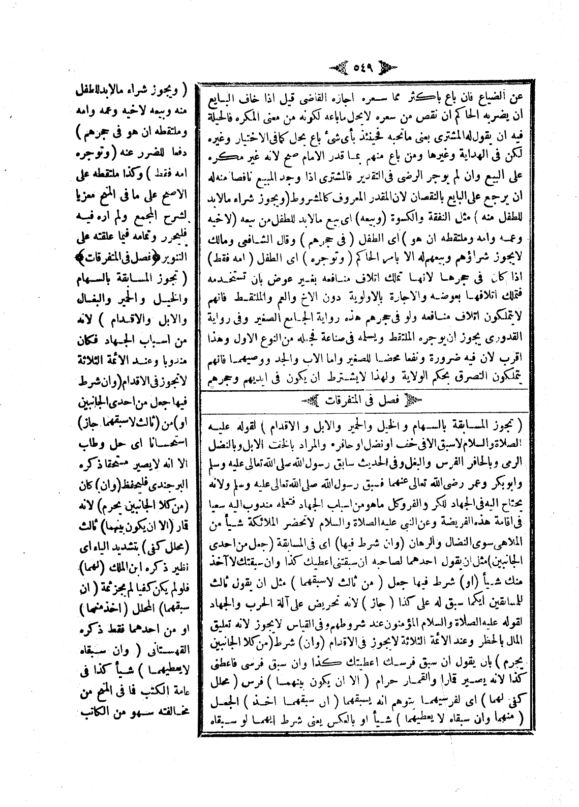 عَنْ الضَّيَاعِ فَإِنْ بَاعَ بِأَكْثَرَ مِمَّا سَعَّرَهُ أَجَازَهُ الْقَاضِي قِيلَ إذَا خَافَ الْبَائِعُ أَنْ يَضْرِبَهُ الْحَاكِمُ إنْ نَقَصَ مِنْ سِعْرِهِ لَا يَحِلُّ مَا بَاعَهُ لِكَوْنِهِ مِنْ مَعْنَى الْمُكْرَهِ فَالْحِيلَةُ فِيهِ أَنْ يَقُولَ لَهُ الْمُشْتَرِي يَعْنِي مَا تُحِبُّهُ فَحِينَئِذٍ بِأَيِّ شَيْءٍ بَاعَ يَحِلُّ كَمَا فِي الِاخْتِيَارِ وَغَيْرِهِ لَكِنْ فِي الْهِدَايَةِ وَغَيْرِهَا وَمَنْ بَاعَ مِنْهُمْ بِمَا قَدَّرَ الْإِمَامُ صَحَّ؛ لِأَنَّهُ غَيْرُ مُكْرَهٍ عَلَى الْبَيْعِ وَإِنْ لَمْ يُؤَجِّرْ الرَّضِيَّ فِي التَّقْدِيرِ فَالْمُشْتَرِي إذَا وَجَدَ الْمَبِيعَ نَاقِصًا مِنْهُ لَهُ أَنْ يَرْجِعَ عَلَى الْبَائِعِ بِالنُّقْصَانِ؛ لِأَنَّ الْمُقَدَّرَ الْمَعْرُوفَ كَالْمَشْرُوطِ.