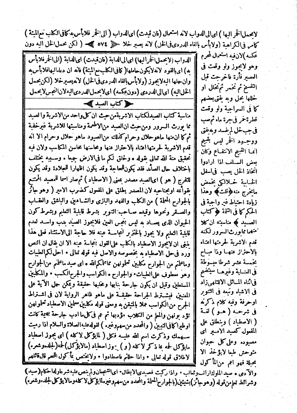 مُنَاسَبَةُ كِتَابِ الصَّيْدِ لِكِتَابِ الْأَشْرِبَةِ مِنْ حَيْثُ إنَّ كُلَّ وَاحِدٍ مِنْ الْأَشْرِبَةِ وَالصَّيْدِ مِمَّا يُورِثُ السُّرُورَ وَمِنْ حَيْثُ إنَّ الصَّيْدَ مِنْ الْأَطْعِمَةِ وَمُنَاسَبَتُهَا لِلْأَشْرِبَةِ غَيْرُ خَفِيَّةٍ ثُمَّ كَمَا أَنَّ مِنْهَا مَا هُوَ حَلَالٌ وَحَرَامٌ كَذَلِكَ مِنْ الصَّيُودِ مَا هُوَ حَلَالٌ وَحَرَامٌ إلَّا أَنَّهُ قَدَّمَ الْأَشْرِبَةَ لِحُرْمَتِهَا اعْتِنَاءً بِالِاحْتِرَازِ عَنْهَا وَمَحَاسِنُهَا مَحَاسِنُ الْمَكَاسِبِ وَلِأَنَّ فِيهِ تَحْقِيقَ مِنَّةِ اللَّهِ تَعَالَى بِقَوْلِهِ {خَلَقَ لَكُمْ مَا فِي الأَرْضِ جَمِيعًا} [البقرة: 29] وَسَبَبُهُ يَخْتَلِفُ بِاخْتِلَافِ حَالِ الصَّائِدِ فَقَدْ يَكُونُ لِلْحَاجَةِ وَقَدْ يَكُونُ إظْهَارًا لِلْجَلَادَةِ وَقَدْ يَكُونُ لِلتَّفَرُّجِ (هُوَ) أَيْ الصَّيْدُ مَصْدَرٌ بِمَعْنَى (الِاصْطِيَادِ) ثُمَّ صَارَ اسْمًا لِلْمَصِيدِ الْمُمْتَنِعِ بِقَوَائِمِهِ أَوْ بِجَنَاحَيْهِ لِأَنَّ الْمَصْدَرَ يُطْلَقُ عَلَى الْمَفْعُولِ كَضَرْبِ الْأَمِيرِ (وَهُوَ جَائِزٌ بِالْجَوَارِحِ الْمُعَلَّمَةِ) مِنْ الْكَلْبِ وَالْفَهْدِ وَالْبَازِي وَالشَّاهِينِ وَالْبَاشِقِ وَالْعُقَابِ وَالصَّقْرِ وَنَحْوِهَا وَقَيَّدَهُ صَاحِبُ التَّنْوِيرِ بِشَرْطِ قَابِلِيَّةِ التَّعْلِيمِ وَبِشَرْطِ كَوْنِ الْحَيَوَانِ الَّذِي يُصَادُ بِهِ لَيْسَ بِنَجِسِ الْعَيْنِ فَلَا يَجُوزُ الصَّيْدُ بِدُبٍّ وَأَسَدٍ لِعَدَمِ قَابِلِيَّةِ التَّعْلِيمِ وَلَا يَجُوزُ بِالْخِنْزِيرِ لِنَجَاسَةِ عَيْنِهِ فَلَا حَاجَةَ إلَى الِاسْتِثْنَاءِ فَعَلَى هَذَا يَنْبَغِي أَنْ لَا يَجُوزَ الِاصْطِيَادُ بِالْكَلْبِ عَلَى الْقَوْلِ بِنَجَاسَةِ عَيْنِهِ إلَّا أَنْ يُقَالَ إنَّ النَّصَّ وَرَدَ فِي حِلِّ الِاصْطِيَادِ بِهِ بِخُصُوصِهِ وَالْأَصْلُ فِيهِ قَوْله تَعَالَى {أُحِلَّ لَكُمُ الطَّيِّبَاتُ وَمَا عَلَّمْتُمْ مِنَ الْجَوَارِحِ مُكَلِّبِينَ تُعَلِّمُونَهُنَّ مِمَّا عَلَّمَكُمُ اللَّهُ} [المائدة: 4] أَيْ صَيْدُ مَا عَلَّمْتُمْ مِنْ الْجَوَارِحِ وَهُوَ مَعْطُوفٌ عَلَى الطَّيِّبَاتِ وَالْجَوَارِحُ الْكَوَاسِبُ وَالْجَرْحُ الْكَسْبُ وَالْمُكَلِّبِينَ الْمُسَلَّطِينَ وَقِيلَ أَنْ يَكُونَ جَارِحَةً بِنَابِهَا وَمِخْلَبِهَا حَقِيقَةً وَيُمْكِنُ حَمْلُ الْآيَةِ عَلَى الْمَعْنَيَيْنِ فَيُشْتَرَطُ الْجِرَاحَةُ حَقِيقَةً عَلَى مَا هُوَ ظَاهِرُ الرِّوَايَةِ لِأَنَّ فِي اشْتِرَاطِ الْجَرْحِ مِنْ الْكَوَاسِبِ عَمَلًا بِالْمُتَيَقَّنِ بِهِ وَمَعْنَى قَوْلِهِ مُكَلِّبِينَ مُعَلِّمِينَ الِاصْطِيَادَ تُعَلِّمُونَهُنَّ تُؤَدِّبُونَهُنَّ وَالْمُعَلَّمُ مِنْ الْكِلَابِ مُؤَدَّبُهَا ثُمَّ عَمَّ فِي كُلِّ مَا أَدَّبَ جَارِحَةً بَهِيمَةً كَانَتْ أَوْ طَيْرًا كَمَا فِي التَّبْيِينِ (وَالْمُحَدَّدُ مِنْ سَهْمٍ وَغَيْرِهِ) لِقَوْلِهِ - عَلَيْهِ الصَّلَاةُ وَالسَّلَامُ - «إذَا رَمَيْت سَهْمَك وَذَكَرْت اسْمَ اللَّهِ عَلَيْهِ فَكُلْ» .