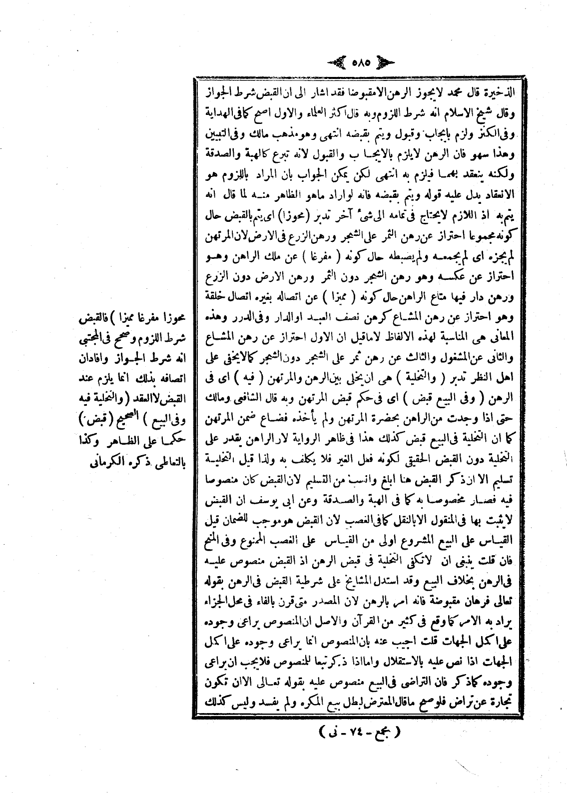 الذَّخِيرَةِ قَالَ مُحَمَّدٌ لَا يَجُوزُ الرَّهْنُ إلَّا مَقْبُوضًا فَقَدْ أَشَارَ إلَى أَنَّ الْقَبْضَ شَرْطُ الْجَوَازِ.