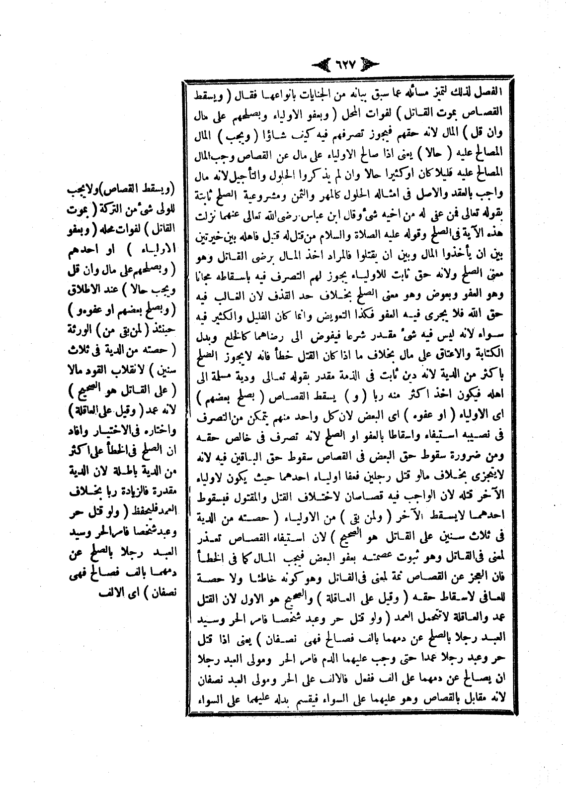 الْفَصْلَ لِذَلِكَ لِتَمَيُّزِ مَسَائِلِهِ عَمَّا سَبَقَ بَيَانُهُ مِنْ الْجِنَايَاتِ بِأَنْوَاعِهَا فَقَالَ (وَيَسْقُطُ الْقِصَاصُ بِمَوْتِ الْقَاتِلِ) لِفَوَاتِ الْمَحِلِّ (وَبِعَفْوِ الْأَوْلِيَاءِ وَبِصُلْحِهِمْ عَلَى مَالٍ وَإِنْ قَلَّ) الْمَالُ لِأَنَّهُ حَقُّهُمْ فَيَجُوزُ تَصَرُّفُهُمْ فِيهِ كَيْفَ شَاءُوا (وَيَجِبُ) الْمَالُ الْمُصَالَحُ عَلَيْهِ (حَالًّا) يَعْنِي إذَا صَالَحَ الْأَوْلِيَاءُ عَلَى مَالٍ عَنْ الْقِصَاصِ وَجَبَ الْمَالُ الْمُصَالَحُ عَلَيْهِ قَلِيلًا كَانَ أَوْ كَثِيرًا حَالًّا وَإِنْ لَمْ يَذْكُرُوا الْحُلُولَ وَالتَّأْجِيلَ لِأَنَّهُ مَالٌ وَاجِبٌ بِالْعَقْدِ وَالْأَصْلُ فِي أَمْثَالِهِ الْحُلُولُ كَالْمَهْرِ وَالثَّمَنِ وَمَشْرُوعِيَّةُ الصُّلْحِ ثَابِتَةٌ بِقَوْلِهِ تَعَالَى {فَمَنْ عُفِيَ لَهُ مِنْ أَخِيهِ شَيْءٌ} [البقرة: 178] وَقَالَ ابْنُ عَبَّاسٍ - رَضِيَ اللَّهُ تَعَالَى عَنْهُمَا - نَزَلَتْ هَذِهِ الْآيَةُ فِي الصُّلْحِ وَقَوْلُهُ - عَلَيْهِ الصَّلَاةُ وَالسَّلَامُ - «مَنْ قُتِلَ لَهُ قَتِيلٌ فَأَهْلُهُ بَيْنَ خِيرَتَيْنِ بَيْنَ أَنْ يَأْخُذُوا الْمَالَ وَبَيْنَ أَنْ يَقْتُلُوا» فَالْمُرَادُ أَخْذُ الْمَالِ بِرِضَى الْقَاتِلِ وَهُوَ مَعْنَى الصُّلْحِ وَلِأَنَّهُ حَقٌّ ثَابِتٌ لِلْأَوْلِيَاءِ يَجُوزُ لَهُمْ التَّصَرُّفُ فِيهِ بِإِسْقَاطِهِ مَجَّانًا وَهُوَ الْعَفْوُ وَبِعِوَضٍ وَهُوَ مَعْنَى الصُّلْحِ بِخِلَافِ حَدِّ الْقَذْفِ لِأَنَّ الْغَالِبَ فِيهِ حَقُّ اللَّهِ فَلَا يَجْرِي فِيهِ الْعَفْوُ فَكَذَا التَّعْوِيضُ وَإِنَّمَا كَانَ الْقَلِيلُ وَالْكَثِيرُ فِيهِ سَوَاءً لِأَنَّهُ لَيْسَ فِيهِ شَيْءٌ مُقَدَّرٌ شَرْعًا فَيُفَوَّضُ إلَى رِضَاهُمَا كَالْخُلْعِ وَبَدَلِ الْكِتَابَةِ وَالْإِعْتَاقِ عَلَى مَالٍ بِخِلَافِ مَا إذَا كَانَ الْقَتْلُ خَطَأً فَإِنَّهُ لَا يَجُوزُ الصُّلْحُ بِأَكْثَرَ مِنْ الدِّيَةِ لِأَنَّهُ دَيْنٌ ثَابِتٌ فِي الذِّمَّةِ مُقَدَّرٌ بِقَوْلِهِ تَعَالَى {وَدِيَةٌ مُسَلَّمَةٌ إِلَى أَهْلِهِ} [النساء: 92] فَيَكُونُ أَخْذُ أَكْثَرَ مِنْهُ رِبًا.