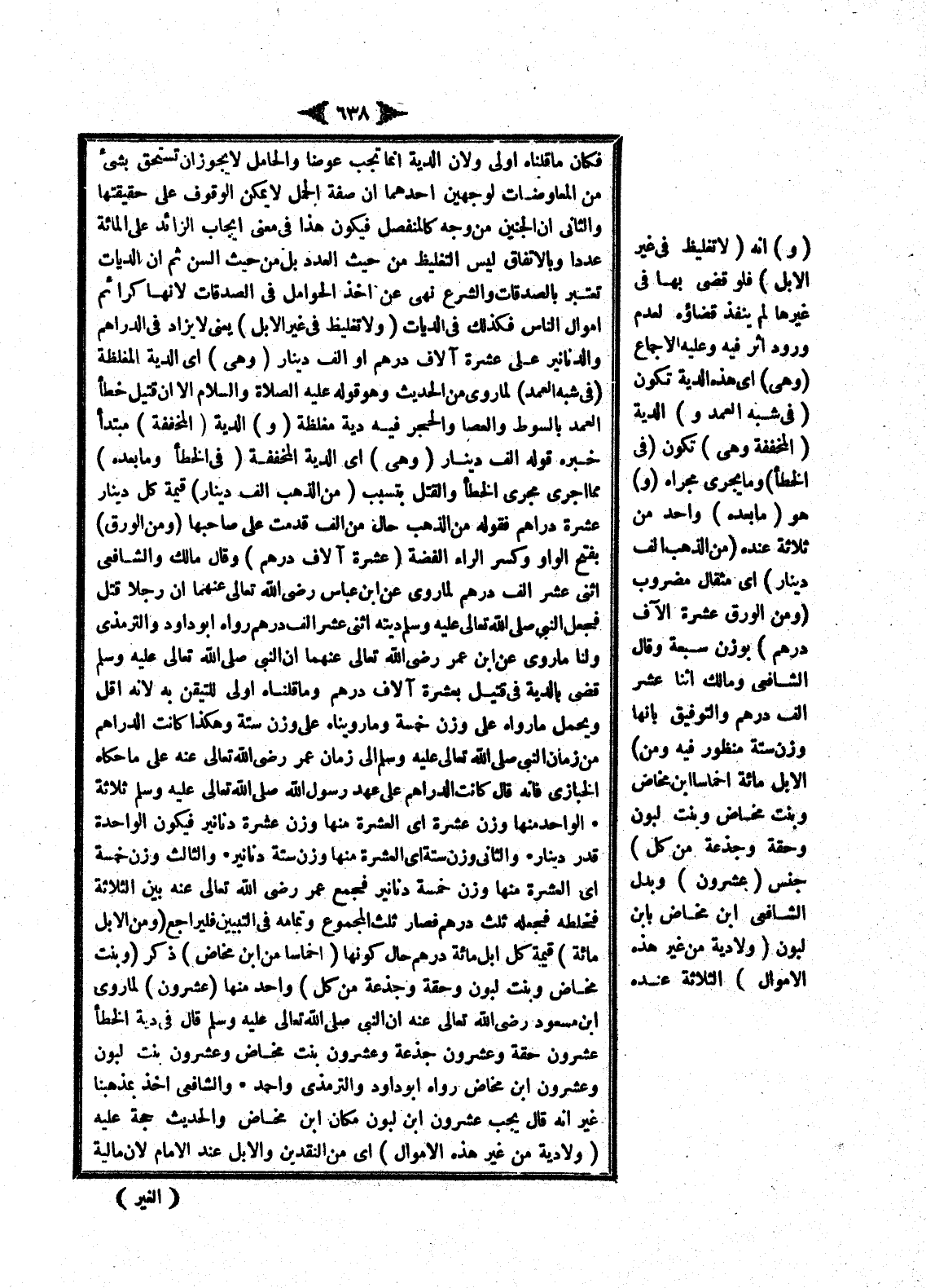 فَكَانَ مَا قُلْنَاهُ أَوْلَى وَلِأَنَّ الدِّيَةَ إنَّمَا تَجِبُ عِوَضًا وَالْحَامِلُ لَا يَجُوزُ أَنْ تَسْتَحِقَّ بِشَيْءٍ مِنْ الْمُعَاوَضَاتِ لِوَجْهَيْنِ: أَحَدُهُمَا أَنَّ صِفَةَ الْحَمْلِ لَا يُمْكِنُ الْوُقُوفُ عَلَى حَقِيقَتِهَا وَالثَّانِي أَنَّ الْجَنِينَ مِنْ وَجْهٍ كَالْمُنْفَصِلِ فَيَكُونُ هَذَا فِي مَعْنَى إيجَابِ الزَّائِدِ عَلَى الْمِائَةِ عَدَدًا وَبِالِاتِّفَاقِ لَيْسَ التَّغْلِيظُ مِنْ حَيْثُ الْعَدَدُ بَلْ مِنْ حَيْثُ السِّنُّ ثُمَّ إنَّ الدِّيَاتِ تُعْتَبَرُ بِالصَّدَقَاتِ وَالشَّرْعُ نَهَى عَنْ أَخْذِ الْحَوَامِلِ فِي الصَّدَقَاتِ لِأَنَّهَا كَرَائِمُ أَمْوَالِ النَّاسِ فَكَذَلِكَ فِي الدِّيَاتِ (وَلَا تَغْلِيظَ فِي غَيْرِ الْإِبِلِ) يَعْنِي لَا يُزَادُ فِي الدَّرَاهِمِ وَالدَّنَانِيرِ عَلَى عَشْرَةِ آلَافِ دِرْهَمٍ أَوْ أَلْفِ دِينَارٍ (وَهِيَ) أَيْ الدِّيَةُ الْمُغَلَّظَةُ (فِي شِبْهِ الْعَمْدِ) لِمَا رُوِيَ مِنْ الْحَدِيثِ وَهُوَ قَوْلُهُ - عَلَيْهِ الصَّلَاةُ وَالسَّلَامُ - «إلَّا أَنَّ قَتِيلَ خَطَأِ الْعَمْدِ بِالسَّوْطِ وَالْعَصَا وَالْحَجَرِ فِيهِ دِيَةٌ مُغَلَّظَةٌ» .