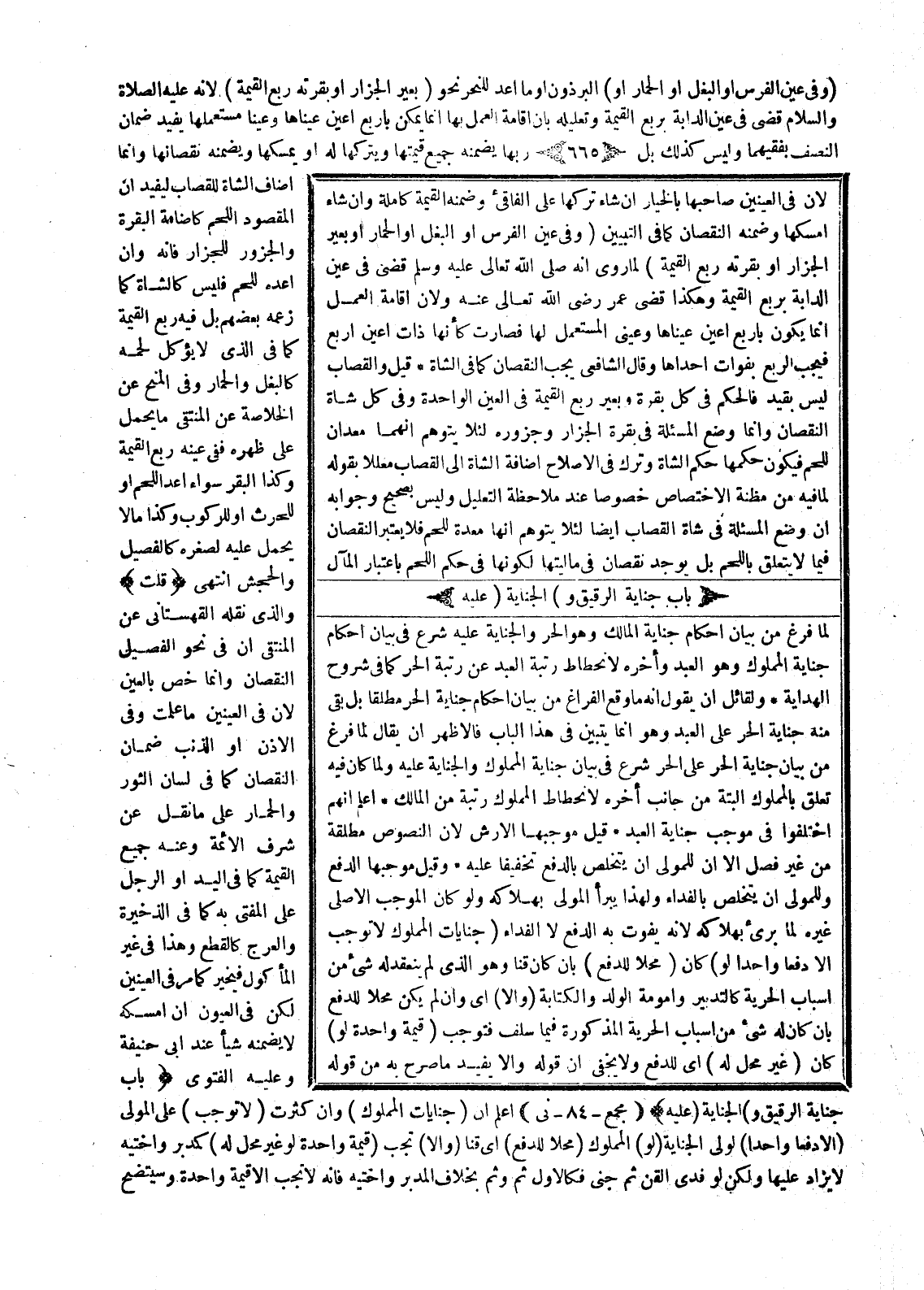 ِ لَمَّا فَرَغَ مِنْ بَيَانِ أَحْكَامِ جِنَايَةِ الْمَالِكِ وَهُوَ الْحُرُّ وَالْجِنَايَةِ عَلَيْهِ شَرَعَ فِي بَيَانِ أَحْكَامِ جِنَايَةِ الْمَمْلُوكِ وَهُوَ الْعَبْدُ وَأَخَّرَهُ لِانْحِطَاطِ رُتْبَةِ الْعَبْدِ عَنْ رُتْبَةِ الْحُرِّ كَمَا فِي شُرُوحِ الْهِدَايَةِ وَلِقَائِلٍ أَنْ يَقُولَ: إنَّهُ مَا وَقَعَ الْفَرَاغُ مِنْ بَيَانِ أَحْكَامِ جِنَايَةِ الْحُرِّ مُطْلَقًا بَلْ بَقِيَ مِنْهُ جِنَايَةُ الْحُرِّ عَلَى الْعَبْدِ وَهُوَ إنَّمَا يَتَبَيَّنُ فِي هَذَا الْبَابِ فَالْأَظْهَرُ أَنْ يُقَالَ لَمَّا فَرَغَ مِنْ بَيَانِ جِنَايَةِ الْحُرِّ عَلَى الْحُرِّ شَرَعَ فِي بَيَانِ جِنَايَةِ الْمَمْلُوكِ وَالْجِنَايَةِ عَلَيْهِ وَلَمَّا كَانَ فِيهِ تَعَلُّقٌ بِالْمَمْلُوكِ أَلْبَتَّةَ مِنْ جَانِبٍ أَخَّرَهُ لِانْحِطَاطِ الْمَمْلُوكِ رُتْبَةً مِنْ الْمَالِكِ اعْلَمْ أَنَّهُمْ اخْتَلَفُوا فِي مُوجِبِ جِنَايَةِ الْعَبْدِ قِيلَ: مُوجِبُهَا الْأَرْشُ لِأَنَّ النُّصُوصَ مُطْلَقَةٌ مِنْ غَيْرِ فَصْلٍ إلَّا أَنَّ لِلْمَوْلَى أَنْ يَتَخَلَّصَ بِالدَّفْعِ تَخْفِيفًا عَلَيْهِ وَقِيلَ: مُوجِبُهَا الدَّفْعُ وَلِلْمَوْلَى أَنْ يَتَخَلَّصَ بِالْفِدَاءِ وَلِهَذَا يَبْرَأُ الْمَوْلَى بِهَلَاكِهِ وَلَوْ كَانَ الْمُوجِبُ الْأَصْلِيُّ غَيْرَهُ لَمَا بَرِئَ بِهَلَاكِهِ لِأَنَّهُ يَفُوتُ بِهِ الدَّفْعُ لَا الْفِدَاءُ (جِنَايَاتُ الْمَمْلُوكِ لَا تُوجِبُ إلَّا دَفْعًا وَاحِدًا لَوْ) كَانَ (مَحِلًّا لِلدَّفْعِ) بِأَنْ كَانَ قِنًّا وَهُوَ الَّذِي لَمْ يَنْعَقِدْ لَهُ شَيْءٌ مِنْ أَسْبَابِ الْحُرِّيَّةِ كَالتَّدْبِيرِ وَأُمُومَةِ الْوَلَدِ وَالْكِتَابَةِ (وَإِلَّا) أَيْ وَإِنْ لَمْ يَكُنْ مَحِلًّا لِلدَّفْعِ بِأَنْ كَانَ لَهُ شَيْءٌ مِنْ أَسْبَابِ الْحُرِّيَّةِ الْمَذْكُورَةِ فِيمَا سَلَفَ فَتُوجِبُ (قِيمَةَ وَاحِدَةٍ لَوْ) كَانَ (غَيْرَ مَحِلٍّ لَهُ) أَيْ لِلدَّفْعِ وَلَا يَخْفَى أَنَّ قَوْلَهُ وَإِلَّا يُفِيدُ مَا صَرَّحَ بِهِ مِنْ قَوْلِهِ