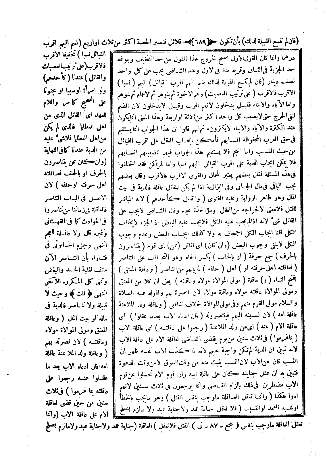 دِرْهَمًا وَإِنَّمَا كَانَ الْقَوْلُ الْأَوَّلُ أَصَحَّ لِخُرُوجِ هَذَا الْقَوْلِ مِنْ حَدِّ التَّخْفِيفِ وَبُلُوغِهِ حَدَّ الْجِزْيَةِ فِي الثَّانِي وَقُرْبِهِ مِنْهُ فِي الْأَوَّلِ وَعِنْدَ الشَّافِعِيِّ يَجِبُ عَلَى كُلِّ وَاحِدٍ نِصْفُ دِينَارٍ (فَإِنْ لَمْ تَتَّسِعْ الْقَبِيلَةُ لِذَلِكَ ضُمَّ إلَيْهِمْ أَقْرَبُ الْقَبَائِلِ) إلَيْهِمْ (نَسَبًا) الْأَقْرَبُ فَالْأَقْرَبُ (عَلَى تَرْتِيبِ الْعَصَبَاتِ) وَهُمْ الْإِخْوَةُ ثُمَّ بَنُوهُمْ ثُمَّ الْأَعْمَامُ ثُمَّ بَنُوهُمْ، وَأَمَّا الْآبَاءُ وَالْأَبْنَاءُ فَقِيلَ يَدْخُلُونَ؛ لِأَنَّهُمْ أَقْرَبُ وَقِيلَ لَا يَدْخُلُونَ؛ لِأَنَّ الضَّمَّ لِنَفْيِ الْحَرَجِ حَتَّى لَا يُصِيبَ كُلَّ وَاحِدٍ أَكْثَرُ مِنْ ثَلَاثَةٍ أَوْ أَرْبَعَةٍ، وَهَذَا الْمَعْنَى إنَّمَا يَكُونُ عِنْدَ الْكَثْرَةِ وَالْآبَاءُ وَالْأَبْنَاءُ لَا يَكْثُرُونَ، ثُمَّ إنَّهُمْ قَالُوا إنَّ هَذَا الْجَوَابَ إنَّمَا يَسْتَقِيمُ فِي حَقِّ الْعَرَبِ الْمَحْفُوظَةِ أَنْسَابُهُمْ فَأَمْكَنَ إيجَابُ الْعَقْلِ عَلَى أَقْرَبِ الْقَبَائِلِ مِنْ حَيْثُ النَّسَبُ، وَأَمَّا الْعَجَمُ فَلَا يَسْتَقِيمُ هَذَا الْجَوَابُ فِيهِمْ لِتَضْيِيعِهِمْ أَنْسَابَهُمْ فَلَا يُمْكِنُ إيجَابُ الدِّيَةِ عَلَى أَقْرَبِ الْقَبَائِلِ إلَيْهِمْ نَسَبًا، وَإِذَا لَمْ يُمْكِنْ فَقَدْ اخْتَلَفُوا فِي هَذِهِ الْمَسْأَلَةِ فَقَالَ بَعْضُهُمْ يُعْتَبَرُ الْمَحَالُّ وَالْقُرَى الْأَقْرَبُ فَالْأَقْرَبُ وَقَالَ بَعْضُهُمْ يَجِبُ الْبَاقِي فِي مَالِ الْجَانِي.