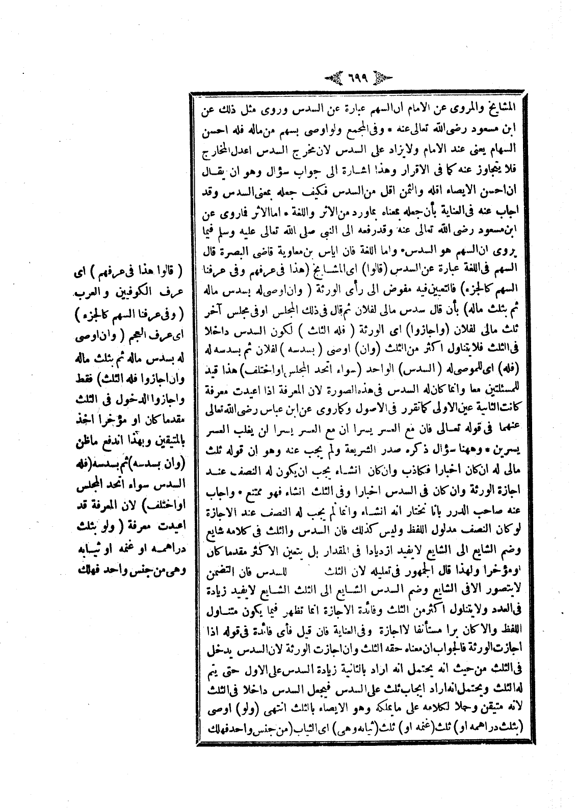 الْمَشَايِخِ وَالْمَرْوِيُّ عَنْ الْإِمَامِ أَنَّ السَّهْمَ عِبَارَةٌ عَنْ السُّدُسِ وَرُوِيَ مِثْلُ ذَلِكَ عَنْ ابْنِ مَسْعُودٍ - رَضِيَ اللَّهُ تَعَالَى عَنْهُ -.