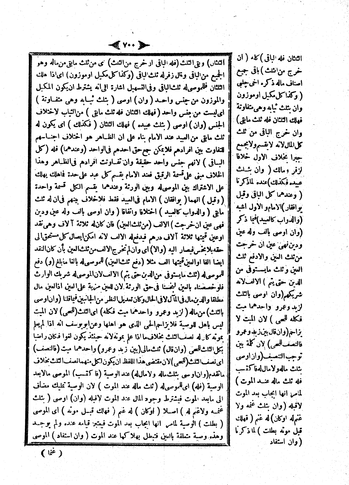 وَقَالَ زُفَرُ لَهُ ثُلُثُ الْبَاقِي (وَكَذَا كُلُّ مَكِيلٍ أَوْ مَوْزُونٍ) أَيْ إذَا هَلَكَ الثُّلُثَانِ فَلِلْمُوصَى لَهُ ثُلُثُ الْبَاقِي.