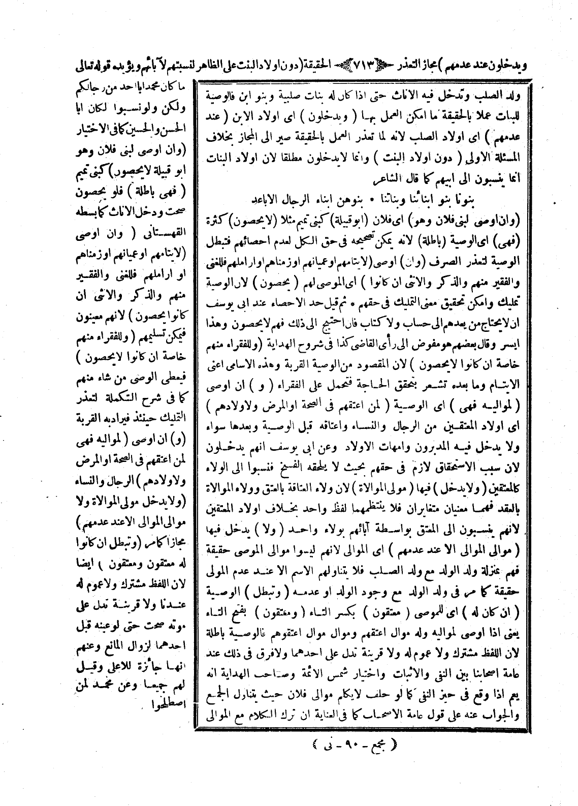 (وَتَبْطُلُ) الْوَصِيَّةُ (إنْ كَانَ لَهُ) أَيْ لِلْمُوصِي (مُعْتِقُونَ) بِكَسْرِ التَّاءِ (وَمُعْتَقُونَ) بِفَتْحِ التَّاءِ يَعْنِي إذَا أَوْصَى لِمَوَالِيهِ وَلَهُ مَوَالٍ أَعْتَقَهُمْ وَمَوَالِي مَوَالٍ أَعْتَقُوهُمْ فَالْوَصِيَّةُ بَاطِلَةٌ؛ لِأَنَّ اللَّفْظَ مُشْتَرَكٌ وَلَا عُمُومَ لَهُ وَلَا قَرِينَةَ تَدُلُّ عَلَى أَحَدِهِمَا، وَلَا فَرْقَ فِي ذَلِكَ عِنْدَ عَامَّةِ أَصْحَابِنَا بَيْنَ النَّفْيِ وَالْإِثْبَاتِ، وَاخْتِيَارُ شَمْسِ الْأَئِمَّةِ وَصَاحِبِ الْهِدَايَةِ أَنَّهُ يَعُمُّ إذَا وَقَعَ فِي حَيِّزِ النَّفْيِ كَمَا لَوْ حَلَفَ لَا يُكَلِّمُ مَوَالِيَ فُلَانٍ حَيْثُ يَتَنَاوَلُ الْجَمْعَ، وَالْجَوَابُ عَنْهُ عَلَى قَوْلِ عَامَّةِ الْأَصْحَابِ كَمَا فِي الْعِنَايَةِ أَنَّ تَرْكَ الْكَلَامِ مَعَ الْمَوَالِي