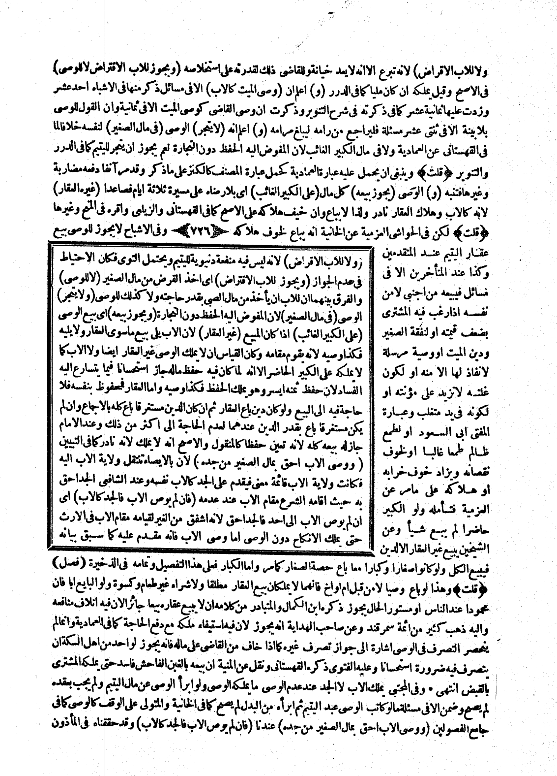 (وَلَا لِلْأَبِ الْإِقْرَاضُ) ؛ لِأَنَّهُ لَيْسَ فِيهِ مَنْفَعَةٌ دُنْيَوِيَّةٌ لِلْيَتِيمِ، وَيُحْتَمَلُ التَّوَى فَكَانَ الِاحْتِيَاطُ فِي عَدَمِ الْجَوَازِ (وَيَجُوزُ لِلْأَبِ الِاقْتِرَاضُ) أَيْ أَخْذُ الْقَرْضِ مِنْ مَالِ الصَّغِيرِ (لَا لِلْوَصِيِّ) وَالْفَرْقُ بَيْنَهُمَا أَنَّ لِلْأَبِ أَنْ يَأْخُذَ مِنْ مَالِ الصَّبِيِّ بِقَدْرِ حَاجَتِهِ وَلَا كَذَلِكَ لِلْوَصِيِّ (وَلَا يَتَّجِرُ) الْوَصِيُّ (فِي مَالِ الصَّغِيرِ) ؛ لِأَنَّ الْمُفَوَّضَ إلَيْهِ الْحِفْظُ دُونَ التِّجَارَةِ (وَيَجُوزُ بَيْعُهُ) أَيْ بَيْعُ الْوَصِيِّ (عَلَى الْكَبِيرِ الْغَائِبِ) إذَا كَانَ الْمَبِيعُ (غَيْرَ الْعَقَارِ) لِأَنَّ الْأَبَ يَلِي بَيْعَ مَا سِوَى الْعَقَارِ، وَلَا يَلِيهِ فَكَذَا وَصِيُّهُ؛ لِأَنَّهُ يَقُومُ مَقَامَهُ، وَكَانَ الْقِيَاسُ أَنْ لَا يَمْلِكَ الْوَصِيُّ غَيْرَ الْعَقَارِ أَيْضًا وَلَا الْأَبُ كَمَا لَا يَمْلِكُهُ عَلَى الْكَبِيرِ الْحَاضِرِ إلَّا أَنَّهُ لَمَّا كَانَ فِيهِ حِفْظُ مَالِهِ جَازَ اسْتِحْسَانًا فِيمَا يَتَسَارَعُ إلَيْهِ الْفَسَادُ؛ لِأَنَّ حِفْظَ ثَمَنِهِ أَيْسَرُ، وَهُوَ يَمْلِكُ الْحِفْظَ فَكَذَا وَصِيُّهُ وَأَمَّا الْعَقَارُ فَمَحْفُوظٌ بِنَفْسِهِ فَلَا حَاجَةَ فِيهِ إلَى الْبَيْعِ، وَلَوْ كَانَ دِينَ بَاعَ الْعَقَارَ، ثُمَّ إنْ كَانَ الدَّيْنُ مُسْتَغْرِقًا بَاعَ كُلَّهُ بِالْإِجْمَاعِ، وَإِنْ لَمْ يَكُنْ مُسْتَغْرِقًا بَاعَ بِقَدْرِ الدَّيْنِ عِنْدَهُمَا لِعَدَمِ الْحَاجَةِ إلَى أَكْثَرَ مِنْ ذَلِكَ.
