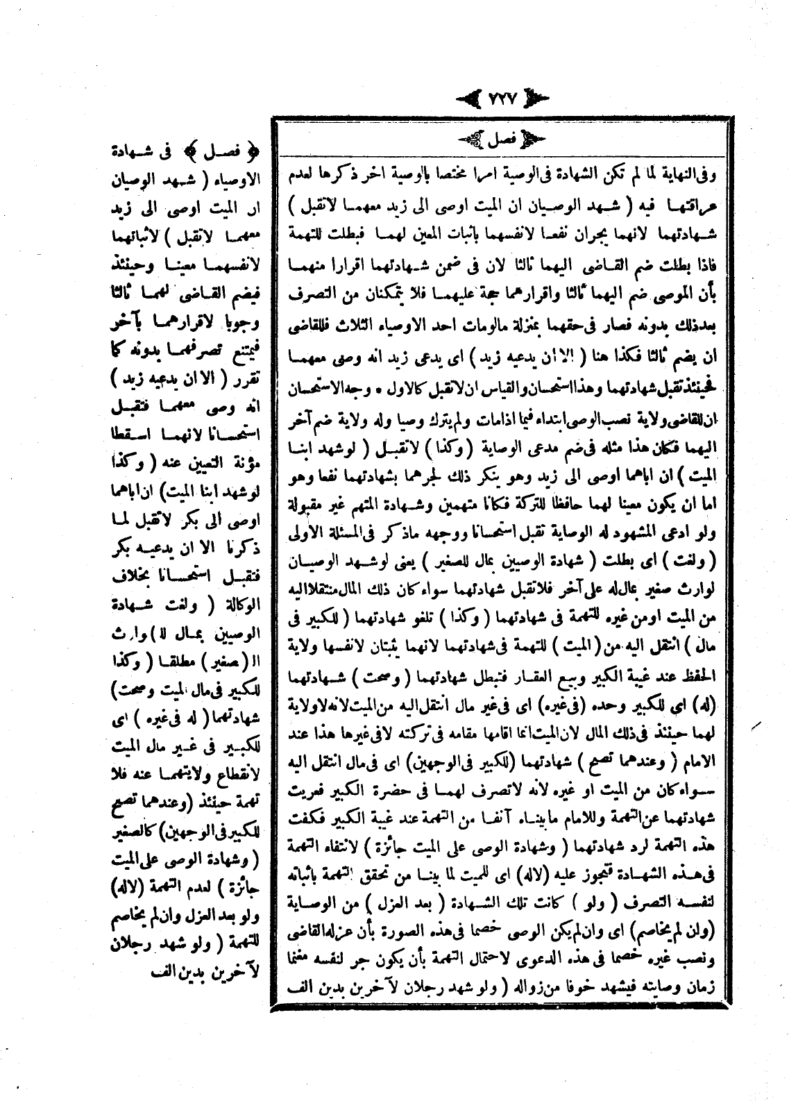 وَفِي النِّهَايَةِ لَمَّا لَمْ تَكُنْ الشَّهَادَةُ فِي الْوَصِيَّةِ أَمْرًا مُخْتَصًّا بِالْوَصِيَّةِ أَخَّرَ ذِكْرَهَا لِعَدَمِ عَرَاقَتِهَا فِيهِ.