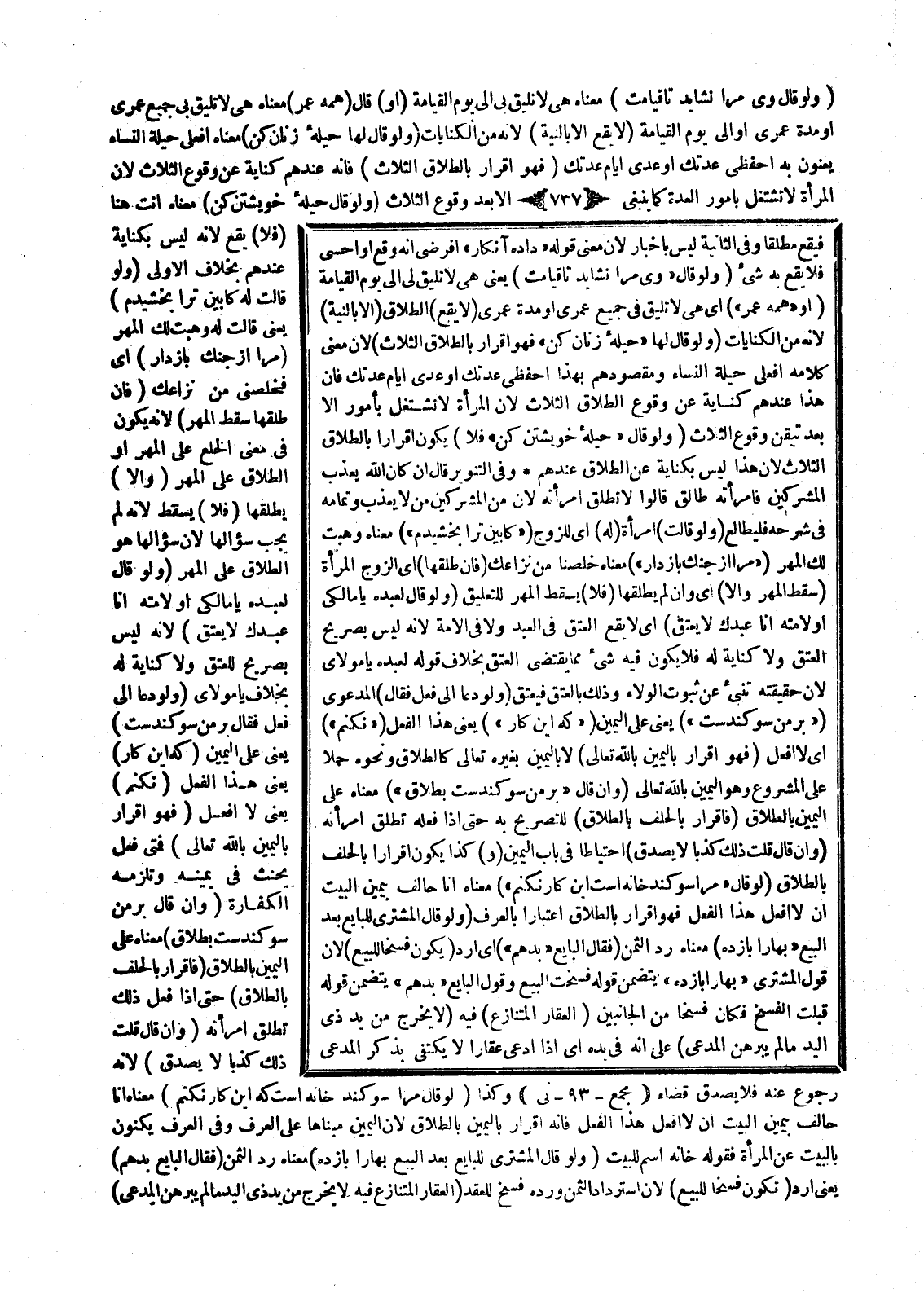 (وَلَوْ قَالَ لَهَا " حِيَله زنان كُنَّ " فَهُوَ إقْرَارٌ بِالطَّلَاقِ الثَّلَاثِ) ؛ لِأَنَّ مَعْنَى كَلَامِهِ افْعَلِي حِيلَةَ النِّسَاءِ وَمَقْصُودُهُمْ بِهَذَا احْفَظِي عِدَّتَك أَوْ عُدِّي أَيَّامَ عِدَّتِك فَإِنَّ هَذَا عِنْدَهُمْ كِنَايَةً عَنْ وُقُوعِ الطَّلَاقِ الثَّلَاثِ؛ لِأَنَّ الْمَرْأَةَ لَا تَشْتَغِلُ بِأُمُورٍ إلَّا بَعْدَ تَيَقُّنِ وُقُوعِ الثَّلَاثِ.