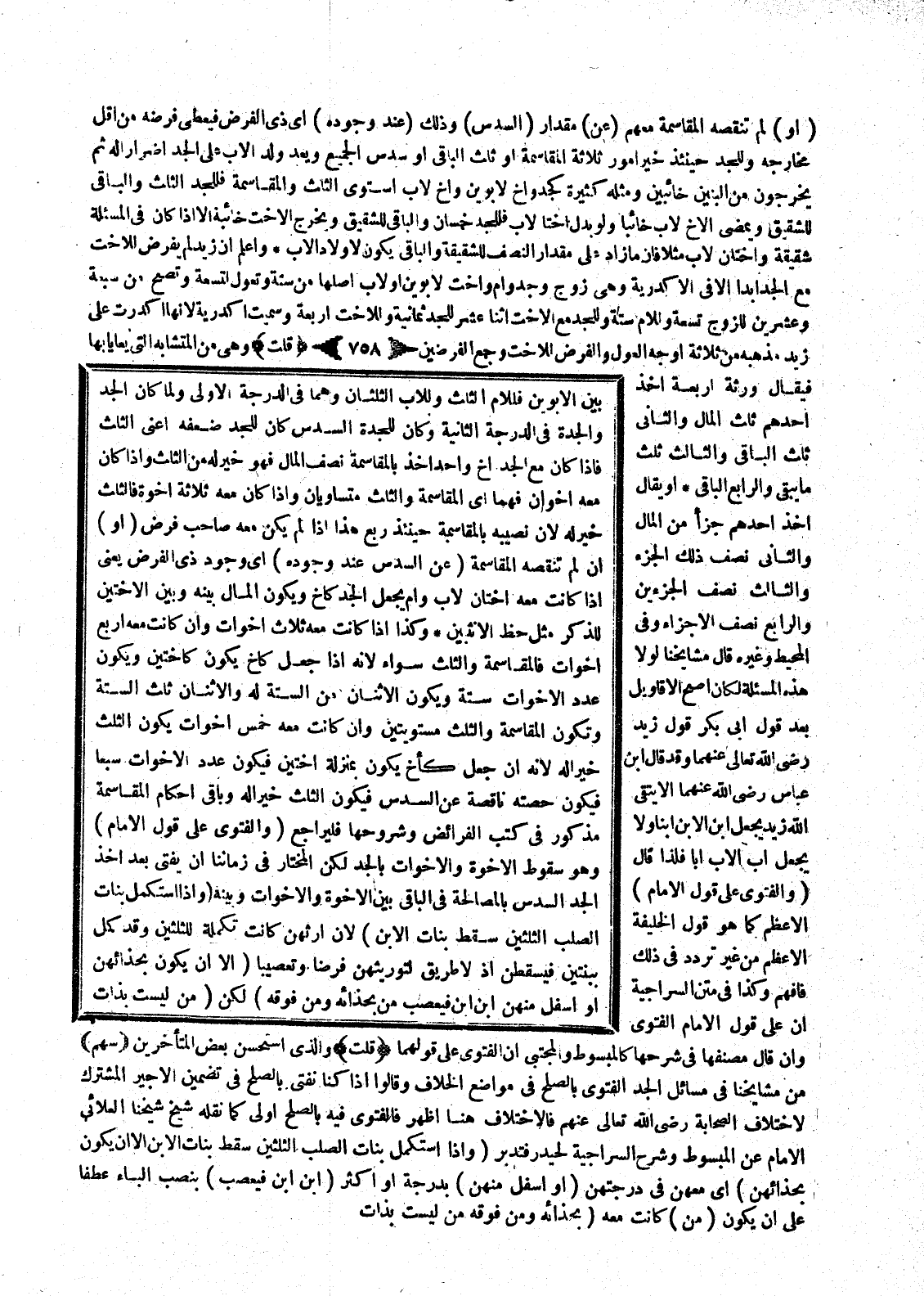 بَيْنَ الْأَبَوَيْنِ فَلِلْأُمِّ الثُّلُثُ وَلِلْأَبِ الثُّلُثَانِ وَهُمَا فِي الدَّرَجَةِ الْأُولَى، وَلَمَّا كَانَ الْجَدُّ وَالْجَدَّةُ فِي الدَّرَجَةِ الثَّانِيَةِ وَكَانَ لِلْجَدَّةِ السُّدُسُ كَانَ لِلْجَدِّ ضِعْفُهُ أَعْنِي الثُّلُثَ، فَإِذَا كَانَ مَعَ الْجَدِّ أَخٌ وَاحِدٌ أَخَذَ بِالْمُقَاسَمَةِ نِصْفَ الْمَالِ فَهُوَ خَيْرٌ لَهُ مِنْ الثُّلُثِ، وَإِذَا كَانَ مَعَهُ أَخَوَانِ فَهُمَا أَيْ الْمُقَاسَمَةُ وَالثُّلُثُ مُتَسَاوِيَانِ، وَإِذَا كَانَ مَعَهُ ثَلَاثَةُ إخْوَةٍ فَالثُّلُثُ خَيْرٌ لَهُ؛ لِأَنَّ نَصِيبَهُ بِالْمُقَاسَمَةِ حِينَئِذٍ رُبُعُ هَذَا إذَا لَمْ يَكُنْ مَعَهُ صَاحِبُ فَرْضٍ (أَوْ) إنْ لَمْ تُنْقِصْهُ الْمُقَاسَمَةُ (عَنْ السُّدُسِ عِنْدَ وُجُودِهِ) أَيْ وُجُودِ ذِي الْفَرْضِ يَعْنِي إذَا كَانَتْ مَعَهُ أُخْتَانِ لِأَبٍ وَأُمٍّ يُجْعَلُ الْجَدَّ كَأَخٍ وَيَكُونُ الْمَالُ بَيْنَهُ وَبَيْنَ الْأُخْتَيْنِ لِلذَّكَرِ مِثْلُ حَظِّ الْأُنْثَيَيْنِ وَكَذَا إذَا كَانَتْ مَعَهُ ثَلَاثُ أَخَوَاتٍ، وَإِنْ كَانَتْ مَعَهُ أَرْبَعُ أَخَوَاتٍ فَالْمُقَاسَمَةُ وَالثُّلُثُ سَوَاءٌ؛ لِأَنَّهُ إذَا جُعِلَ كَأَخٍ يَكُونُ كَأُخْتَيْنِ وَيَكُونُ عَدَدُ الْأَخَوَاتِ سِتَّةً وَيَكُونُ الِاثْنَانِ مِنْ السِّتَّةِ لَهُ وَالِاثْنَانِ ثُلُثُ السِّتَّةِ وَتَكُونُ الْمُقَاسَمَةُ وَالثُّلُثُ مُسْتَوِيَتَيْنِ، وَإِنْ كَانَتْ مَعَهُ خَمْسُ أَخَوَاتٍ يَكُونُ الثُّلُثُ خَيْرًا لَهُ؛ لِأَنَّهُ إنْ جُعِلَ كَأَخٍ يَكُونُ بِمَنْزِلَةِ أُخْتَيْنِ فَيَكُونُ عَدَدُ الْأَخَوَاتِ سَبْعًا فَيَكُونُ حِصَّتُهُ نَاقِصَةً عَنْ السُّدُسِ فَيَكُونُ الثُّلُثُ خَيْرًا لَهُ، وَبَاقِي أَحْكَامِ الْمُقَاسَمَةِ مَذْكُورٌ فِي كُتُبِ الْفَرَائِضِ وَشُرُوحِهَا فَلْيُرَاجَعْ (وَالْفَتْوَى عَلَى قَوْلِ الْإِمَامِ) وَهُوَ سُقُوطُ الْإِخْوَةِ وَالْأَخَوَاتِ بِالْجَدِّ لَكِنَّ الْمُخْتَارَ فِي زَمَانِنَا أَنْ يُفْتَى بَعْدَ أَخْذِ الْجَدِّ السُّدُسَ بِالْمُصَالَحَةِ فِي الْبَاقِي بَيْنَ الْإِخْوَةِ وَالْأَخَوَاتِ وَبَيْنَهُ.