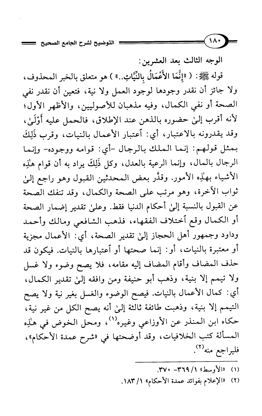 (¬2) "الإعلام بفوائد عمدة الأحكام" 1/ 183.