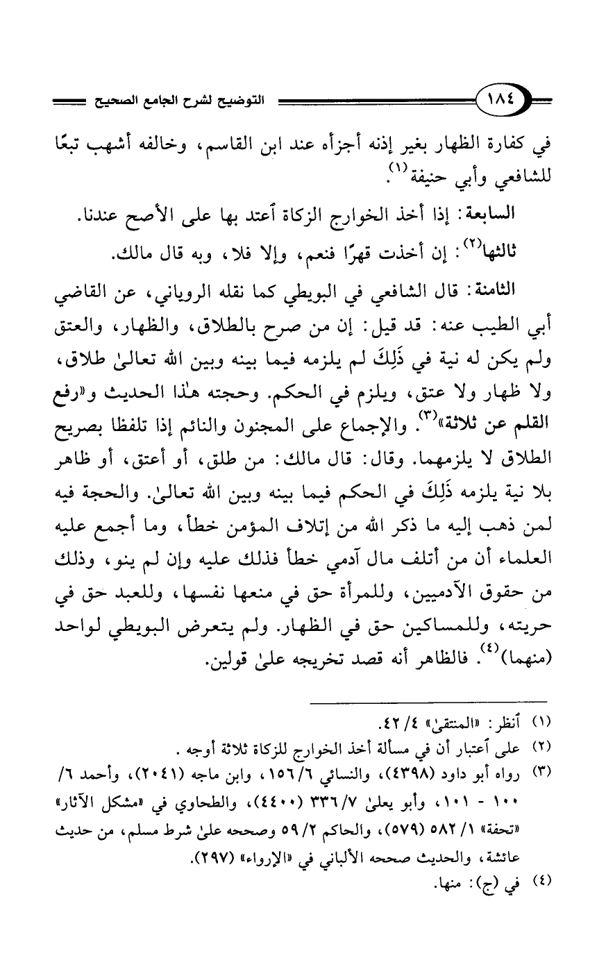 (¬3) رواه أبو داود (4398)، والنسائي 6/ 156، وابن ماجه (2041)، وأحمد 6/ 100 - 101، وأبو يعلى 7/ 336 (4400)، والطحاوي في "مشكل الآثار" "تحفة" 1/ 582 (579)، والحاكم 2/ 59 وصححه على شرط مسلم، من حديث عائشة، والحديث صححه الألباني في "الإرواء" (297).