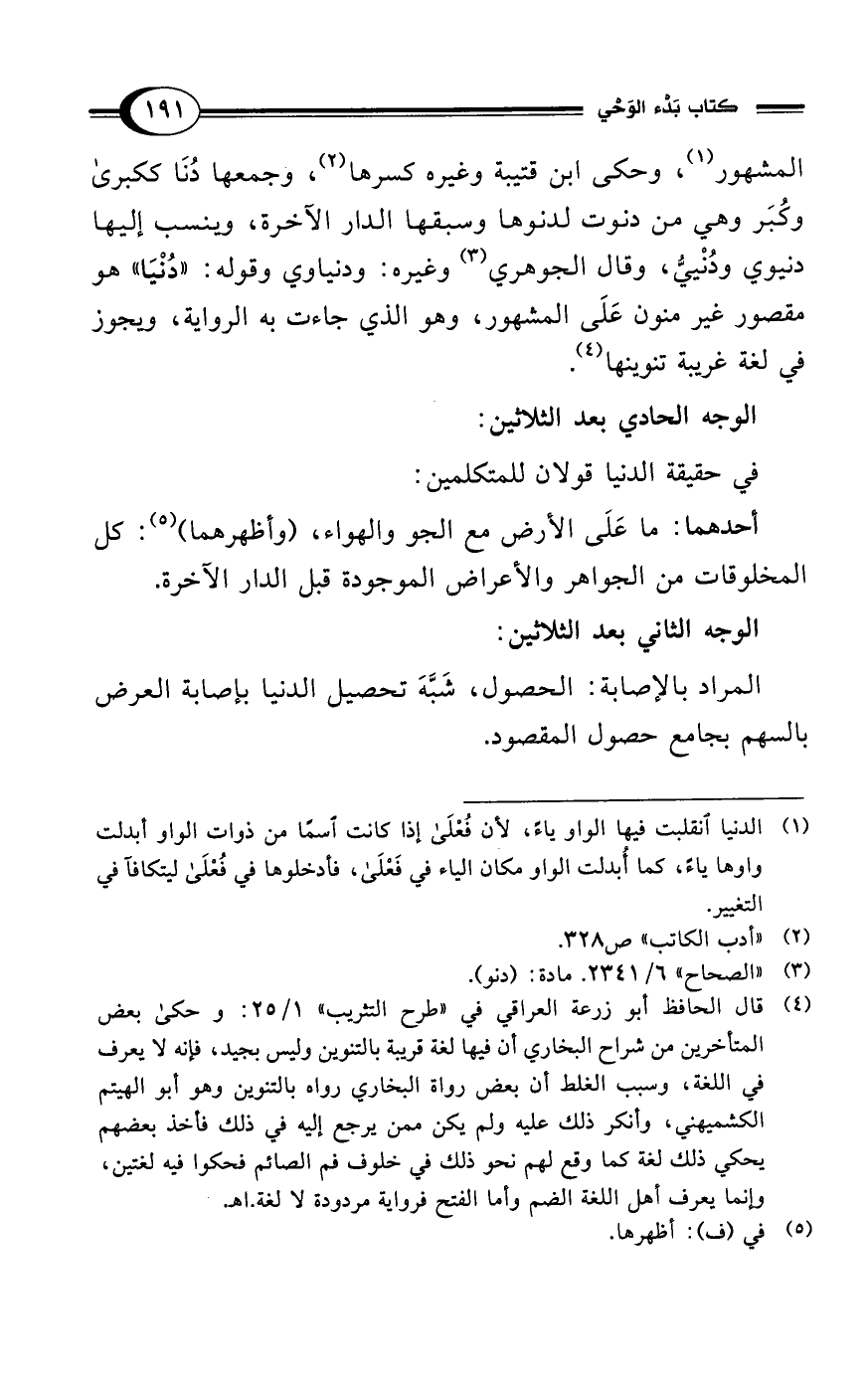 (¬1) الدنيا انقلبت فيها الواو ياءً، لأن فُعْلَى إذا كانت اسمًا من ذوات الواو أبدلت واوها ياءً، كما أُبدلت الواو مكان الياء في فَعْلَى، فأدخلوها في فُعْلَى ليتكافآ في التغيير.