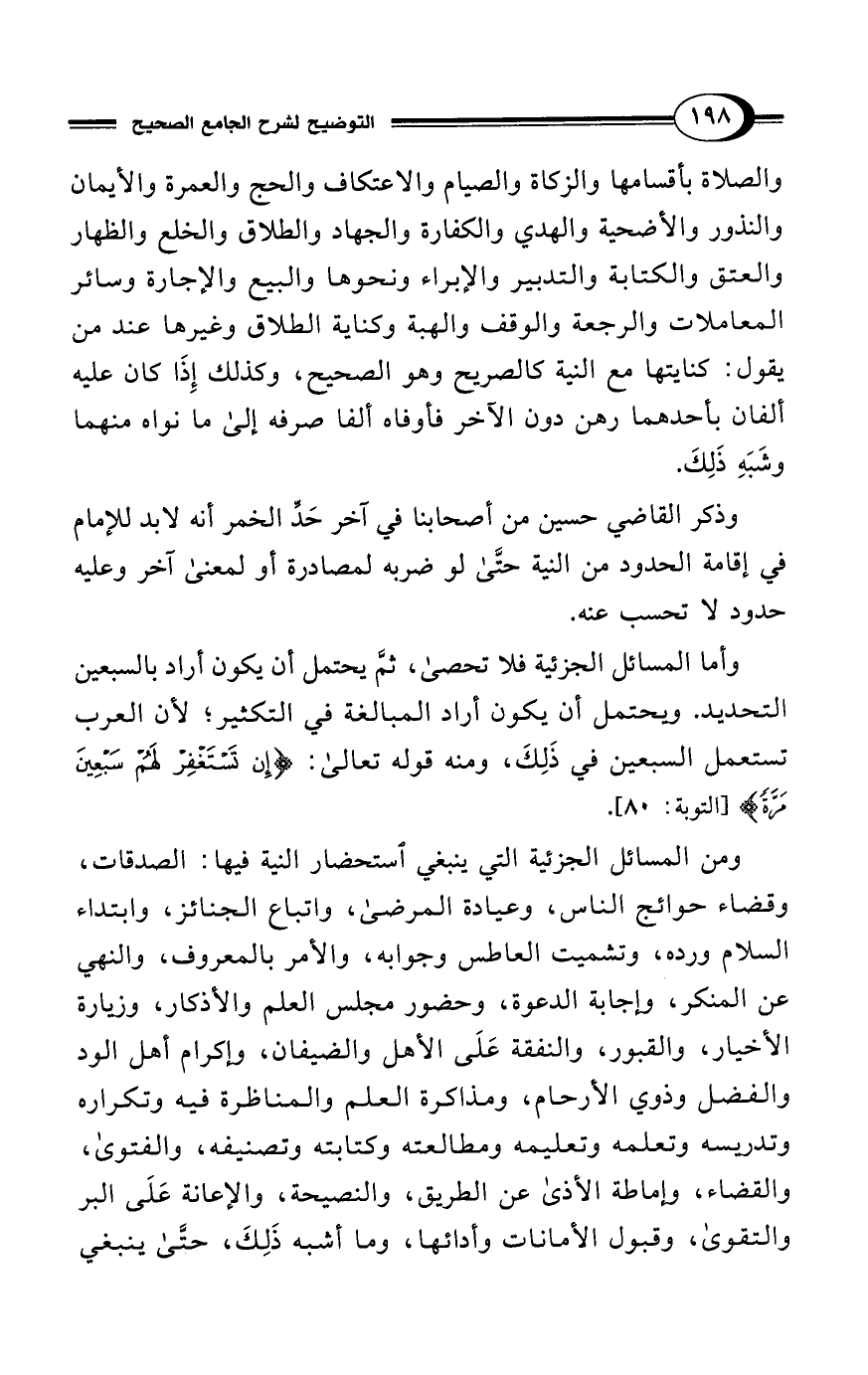 وأما المسائل الجزئية فلا تحصى، ثمَّ يحتمل أن يكون أراد بالسبعين التحديد. ويحتمل أن يكون أراد المبالغة في التكثير؛ لأن العرب تستعمل السبعين في ذَلِكَ، ومنه قوله تعالى: {إِنْ تَسْتَغْفِرْ لَهُمْ سَبْعِينَ مَرَّةً} [التوبة: 80].
