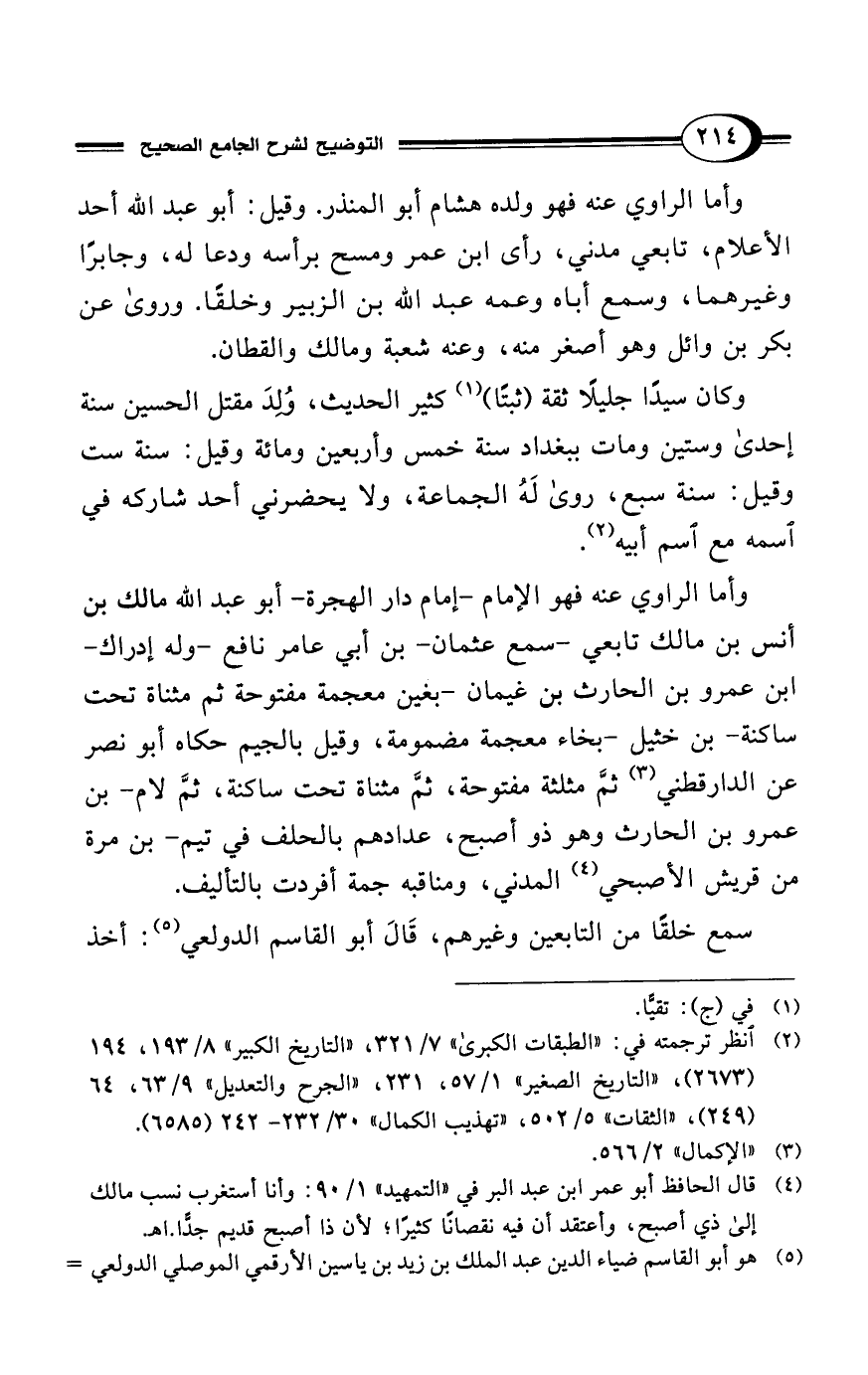 (¬2) انظر ترجمته في: "الطبقات الكبرى" 7/ 321، "التاريخ الكبير" 8/ 193، 194 (2673)، "التاريخ الصغير" 1/ 57، 231، "الجرح والتعديل" 9/ 63، 64 (249)، "الثقات" 5/ 502، "تهذيب الكمال" ج 3/ 232 - 242 (6585).