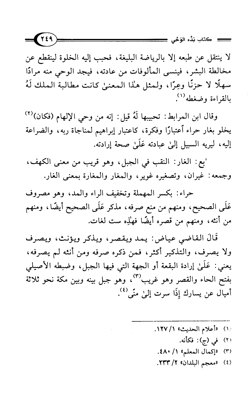 لا ينتقل عن طبعه إلا بالرياضة البليغة، فحبب إليه الخلوة لينقطع عن مخالطة البشر، فينسى المألوفات من عادته، فيجد الوحي منه مرادًا سهلًا لا حزنًا وعِرًا، ولمثل هذا المعنى كانت مطالبة الملك لَهُ بالقراءة وضغطه (¬1).