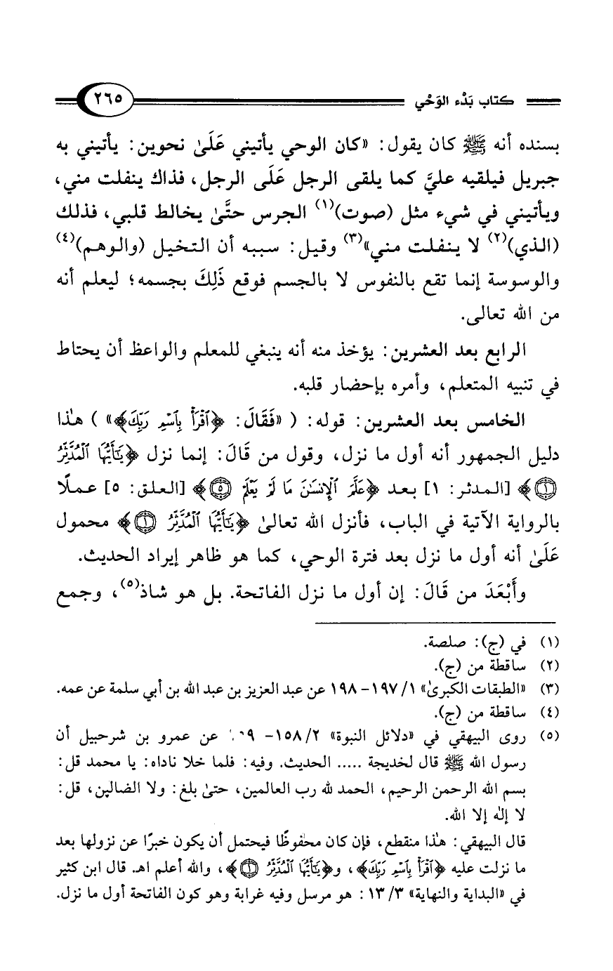 (¬5) روى البيهقي في "دلائل النبوة" 2/ 158 - 159 عن عمرو بن شرحبيل أن رسول الله - صلى الله عليه وسلم - قال لخديجة ..... الحديث. وفيه: فلما خلا ناداه: يا محمد قل: بسم الله الرحمن الرحيم، الحمد لله رب العالمين، حتى بلغ: ولا الضالين، قل: لا إله إلا الله.