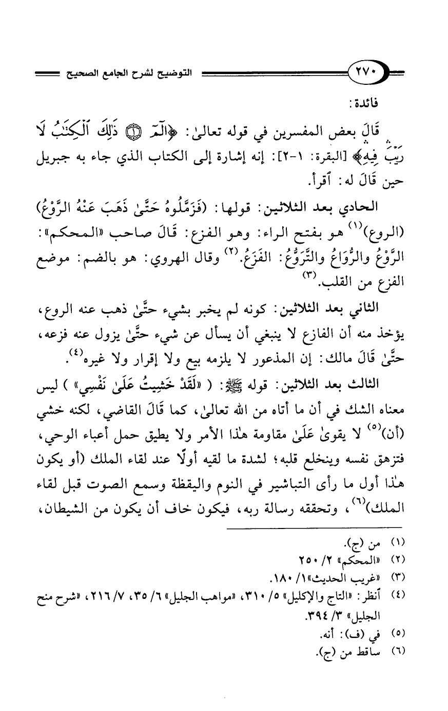 قَالَ بعض المفسرين في قوله تعالى: {الم (1) ذَلِكَ الْكِتَابُ لَا رَيْبَ فِيهِ هُدًى لِلْمُتَّقِينَ (2)} [البقرة: 1 - 2]: إنه إشارة إلى الكتاب الذي جاء به جبريل حين قَالَ له: اقرأ.