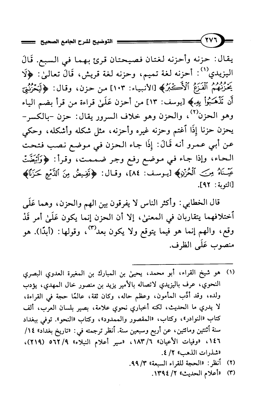 (¬1) هو شيخ القراء، أبو محمد، يحيى بن المبارك بن المغيرة العدوي البصري النحوي، عرف باليزيدي لاتصاله بالأمير يزيد بن منصور خال المهدي، يؤدب ولده، وقد أدَّب المأمون، وعظم حاله، وكان ثقة، عالمًا حجة في القراءة، لا يدري ما الحديث، لكنه أخباري نحوي علامة، بصير بلسان العرب، ألف كتاب "النوادر"، وكتاب، "المقصور والممدود"، وكتاب "النحو". توفي ببغداد سنة اثنتين ومائتين، عن أربع وسبعين سنة. انظر ترجمته في: "تاريخ بغداد" 14/ 146، "وفيات الأعيان" 6/ 183، "سير أعلام النبلاء" 9/ 562 (219)، "شذرات الذهب" 2/ 4.