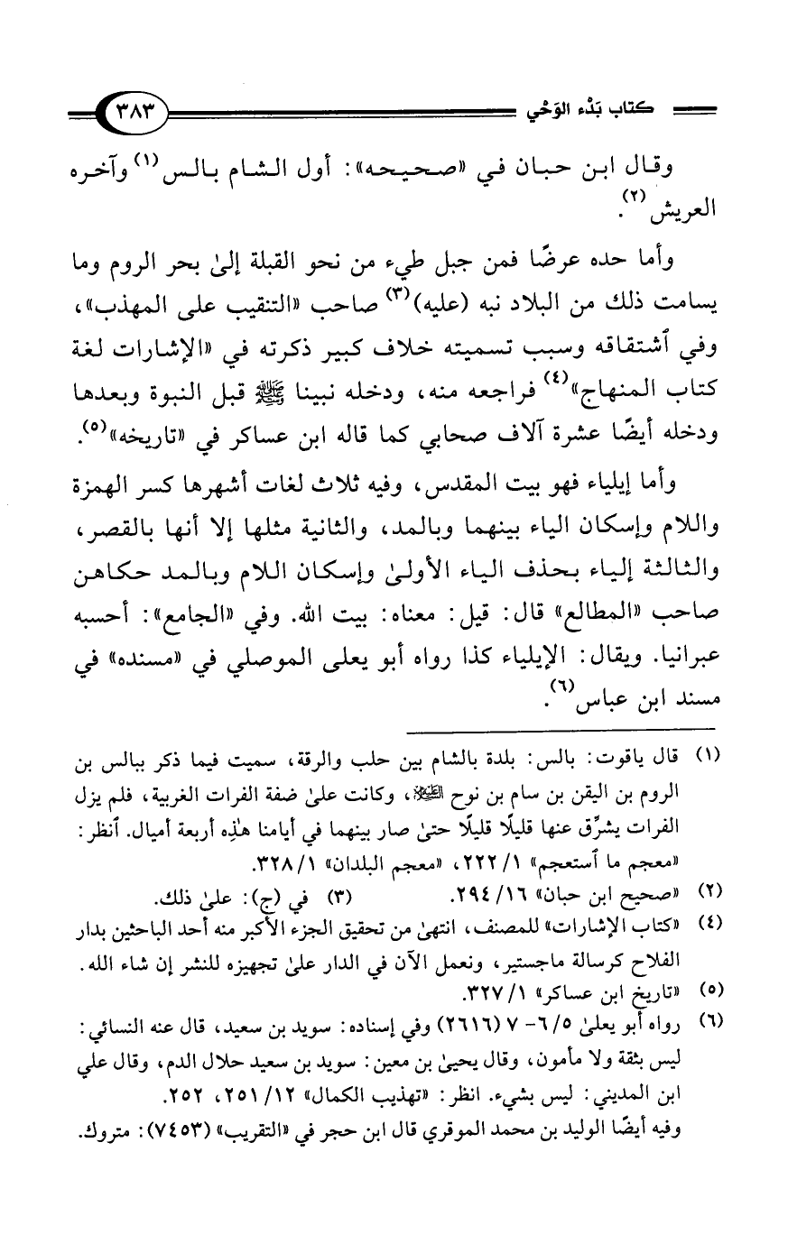 وقال ابن حبان في "صحيحه": أول الشام بالس (¬1) وآخره العريش (¬2).