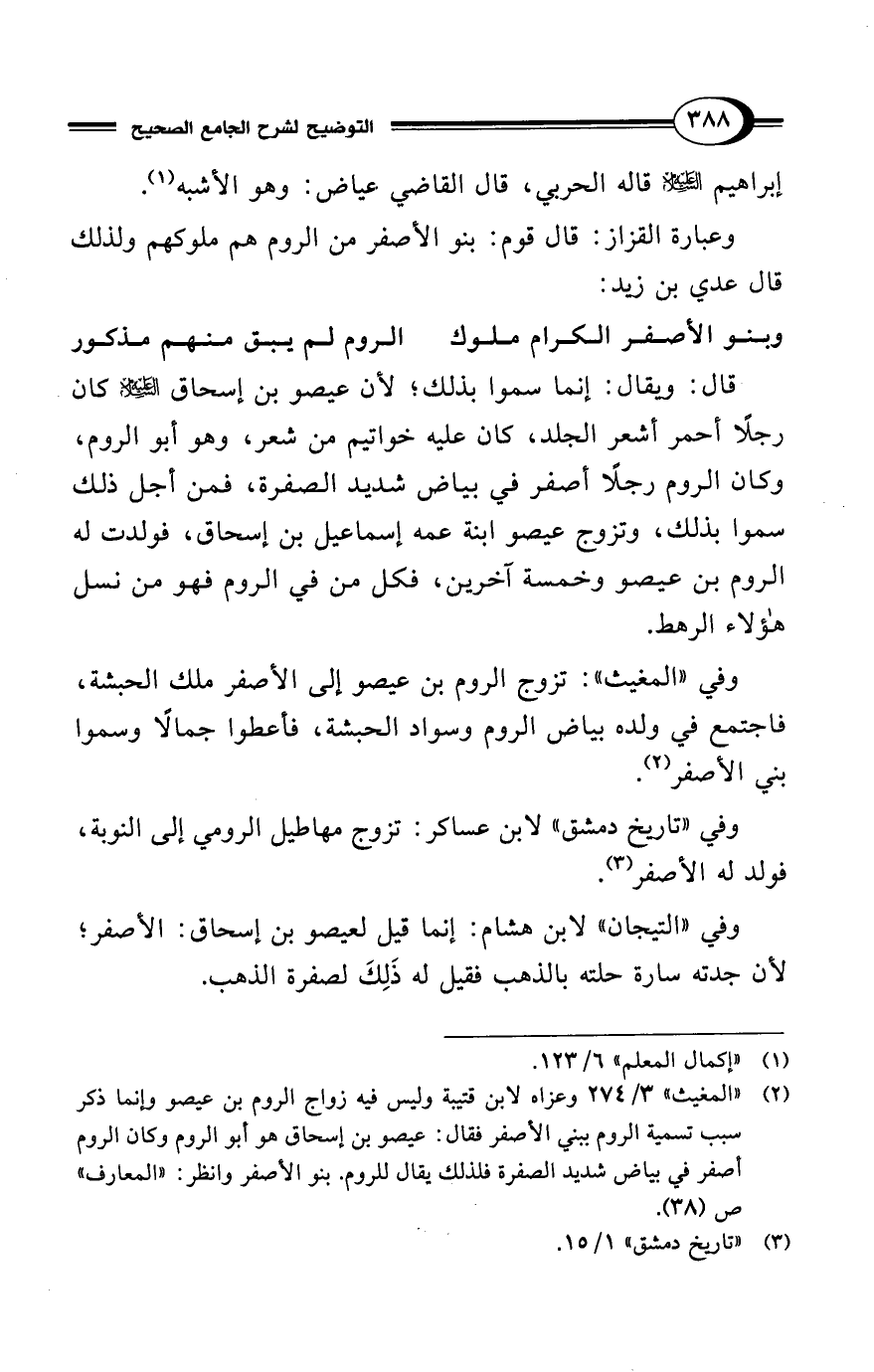 (¬2) "المغيث" 3/ 274 وعزاه لابن قتيبة وليس فيه زواج الروم بن عيصو وإنما ذكر سبب تسمية الروم ببني الأصفر فقال: عيصو بن إسحاق هو أبو الروم وكان الروم أصفر في بياض شديد الصفرة فلذلك يقال للروم. بنو الأصفر وانظر: "المعارف" ص (38).