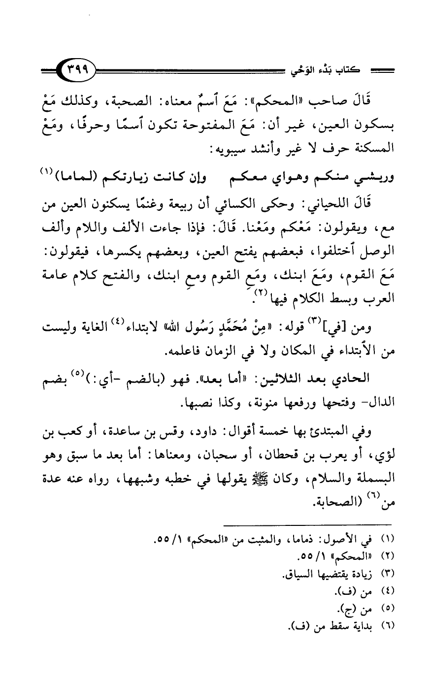 وفي المبتدئ بها خمسة أقوال: داود، وقس بن ساعدة، أو كعب بن لؤي، أو يعرب بن قحطان، أو سحبان، ومعناها: أما بعد ما سبق وهو البسملة والسلام، وكان - صلى الله عليه وسلم - يقولها في خطبه وشبهها، رواه عنه عدة من (¬6) (الصحابة.