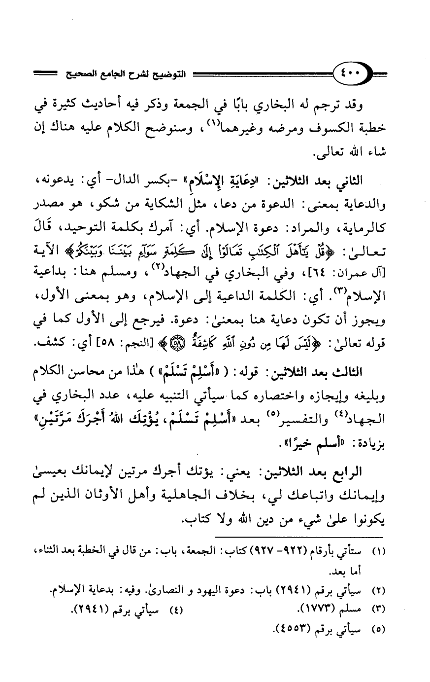 (¬2) سيأتي برقم (2941) باب: دعوة اليهود والنصارى. وفيه: بدعاية الإسلام.